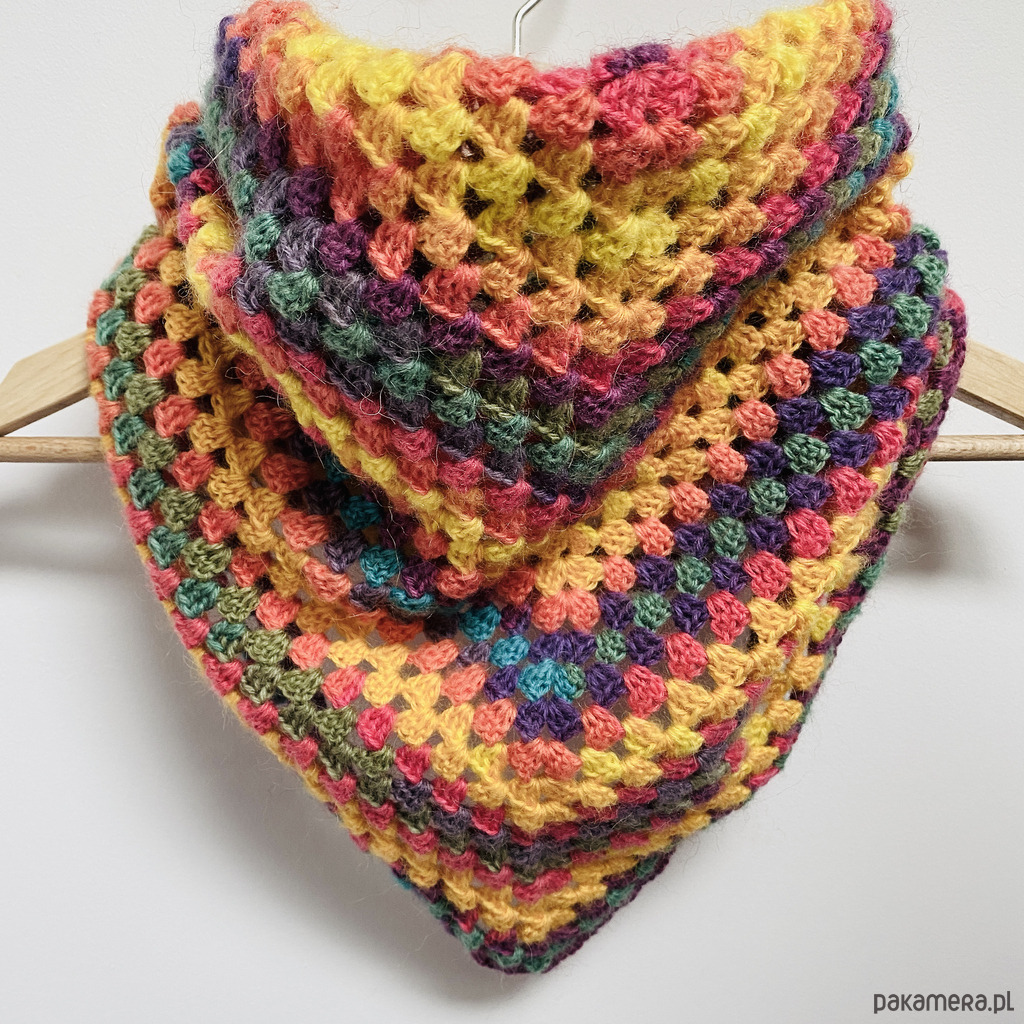 Ciepła apaszka / chusta dla dziewczynki została wykonana ręcznie na szydełku z wysokiej jakości, delikatnej i niegryzącej, włóczki Papatya Angora z certyfikatem OEKO_TEX Standard 100, 550 m.