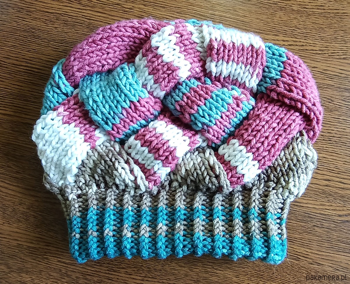 Czapka a w zasadzie beret ręcznie wykonany przeze mnie jest doskonały na jesień, zimę i wiosnę. Na każdą okazję - spacer, do pracy, na rower, jogging.