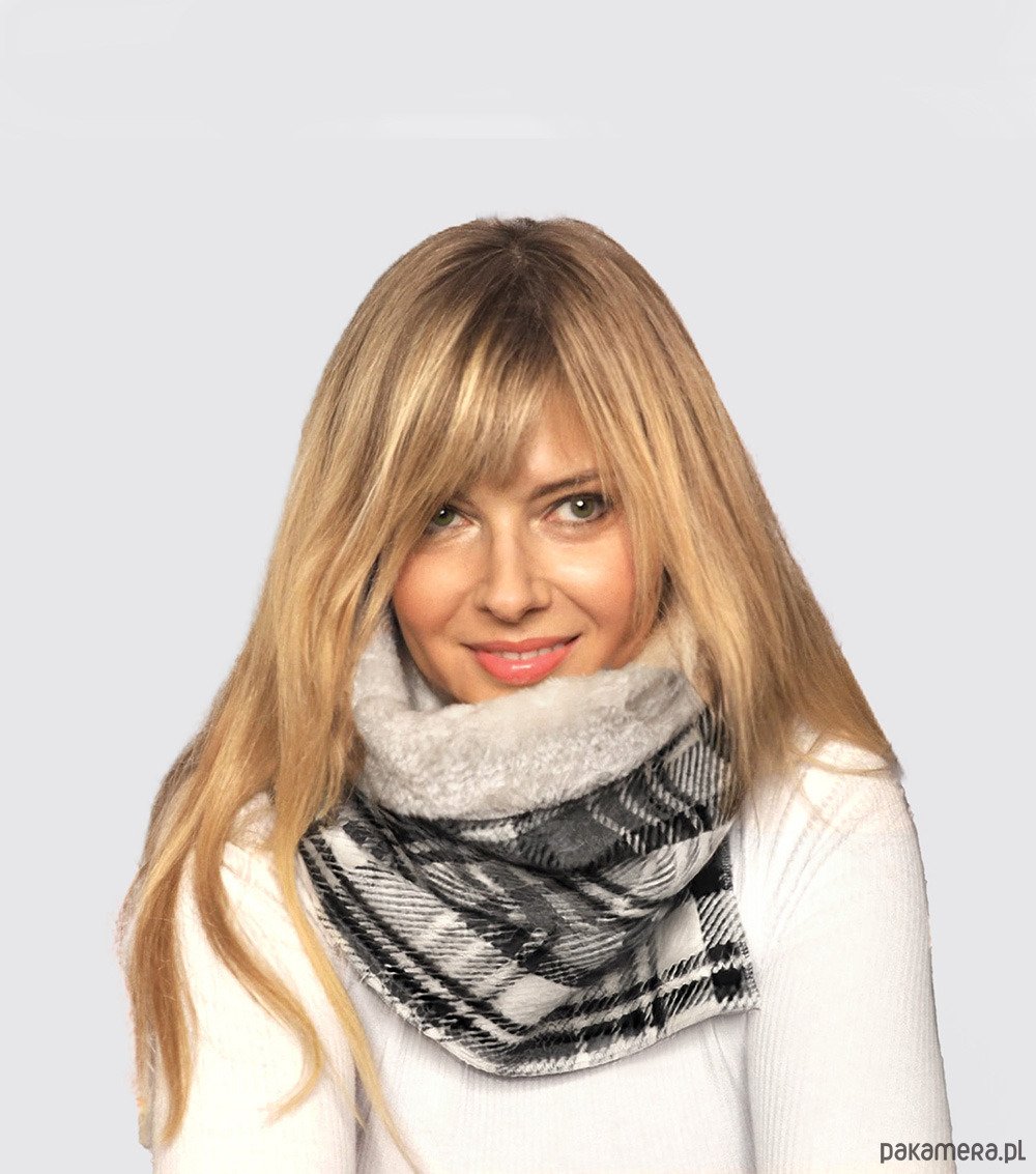 CIEPLUTKI KOMIN szal, elegancka kratka i futerko