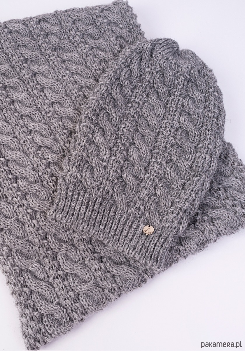 Ciepły i stylowy komplet czapka + szalik, szary