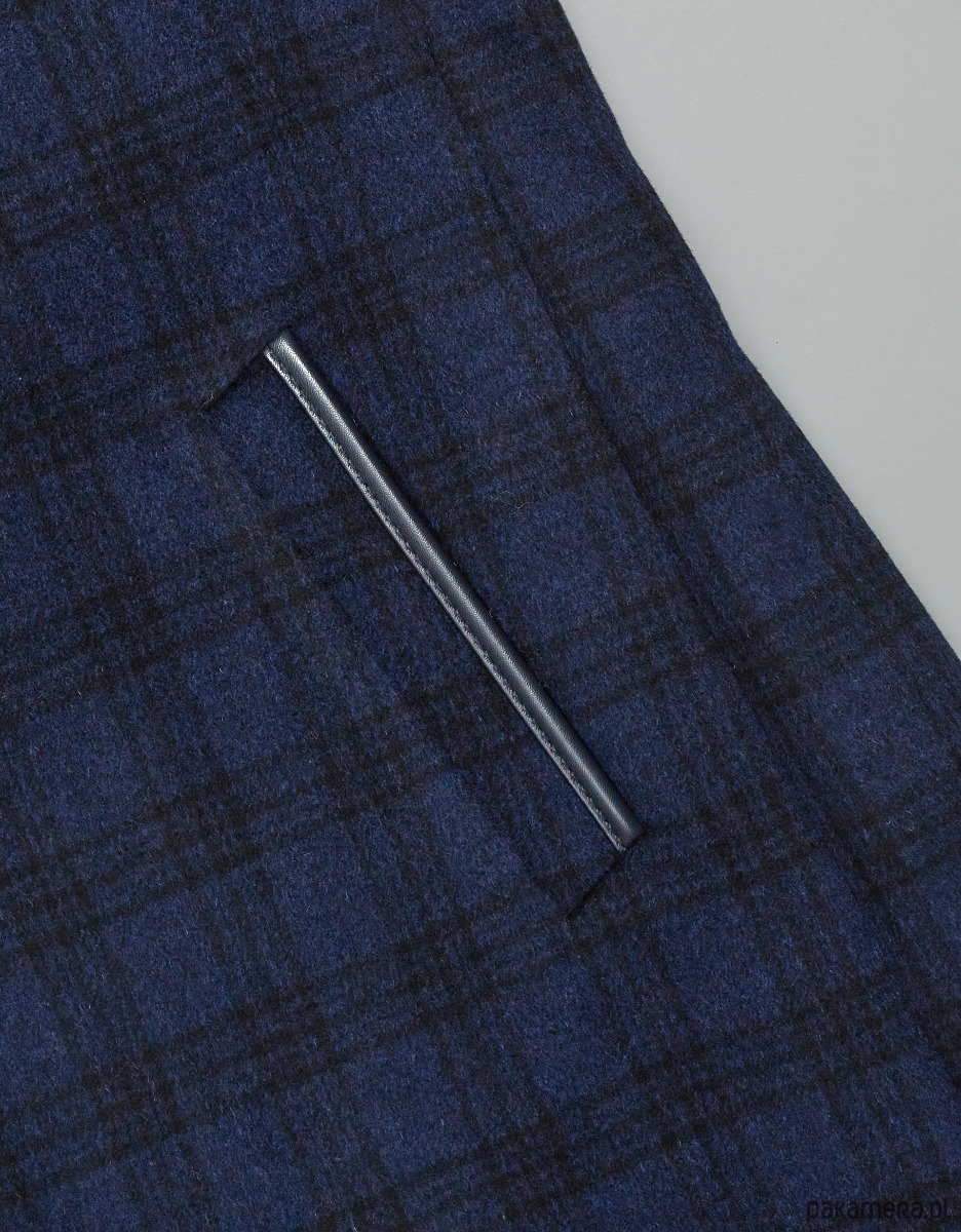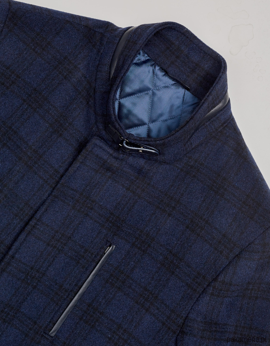 Ciepły płaszcz męski w kratę noto granatowy stójka