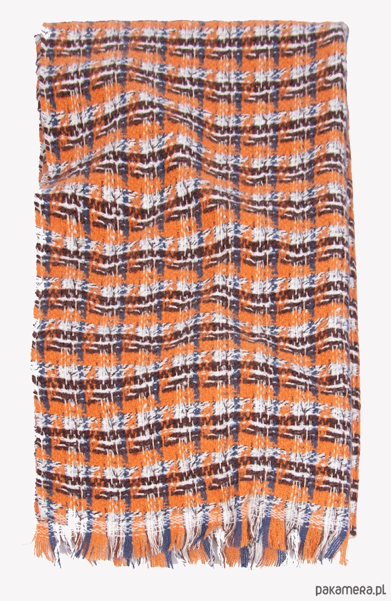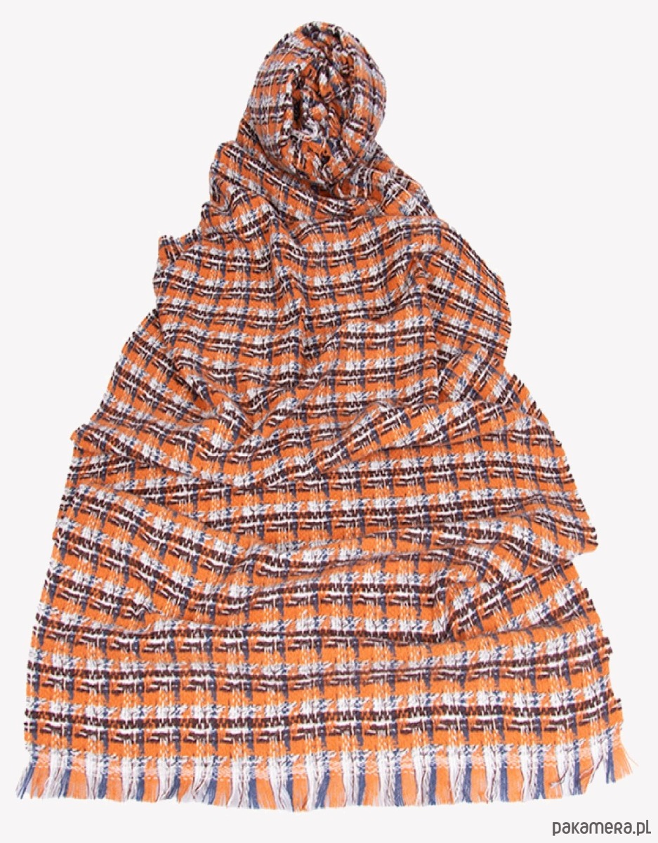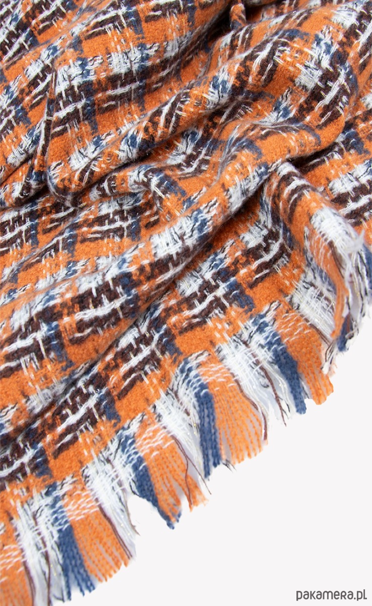 Ten szal z wełną to jesienno-zimowy statement w najlepszym wydaniu – miękki, ciepły i przyjemnie otulający. Energetyczna krata w odcieniach rudości, granatu i bieli dodaje stylizacji charakteru i totalnie ożywia nawet najprostszy płaszcz. Delikatne frędzle i wyraźna faktura tkaniny dają efekt „wow”, ale wciąż bardzo classy. To idealny wybór, jeśli lubisz dodatki, które robią klimat i nie przechodzą niezauważone.