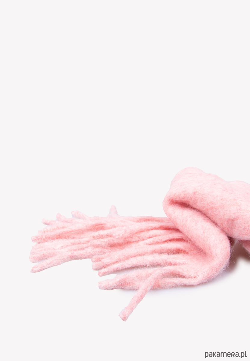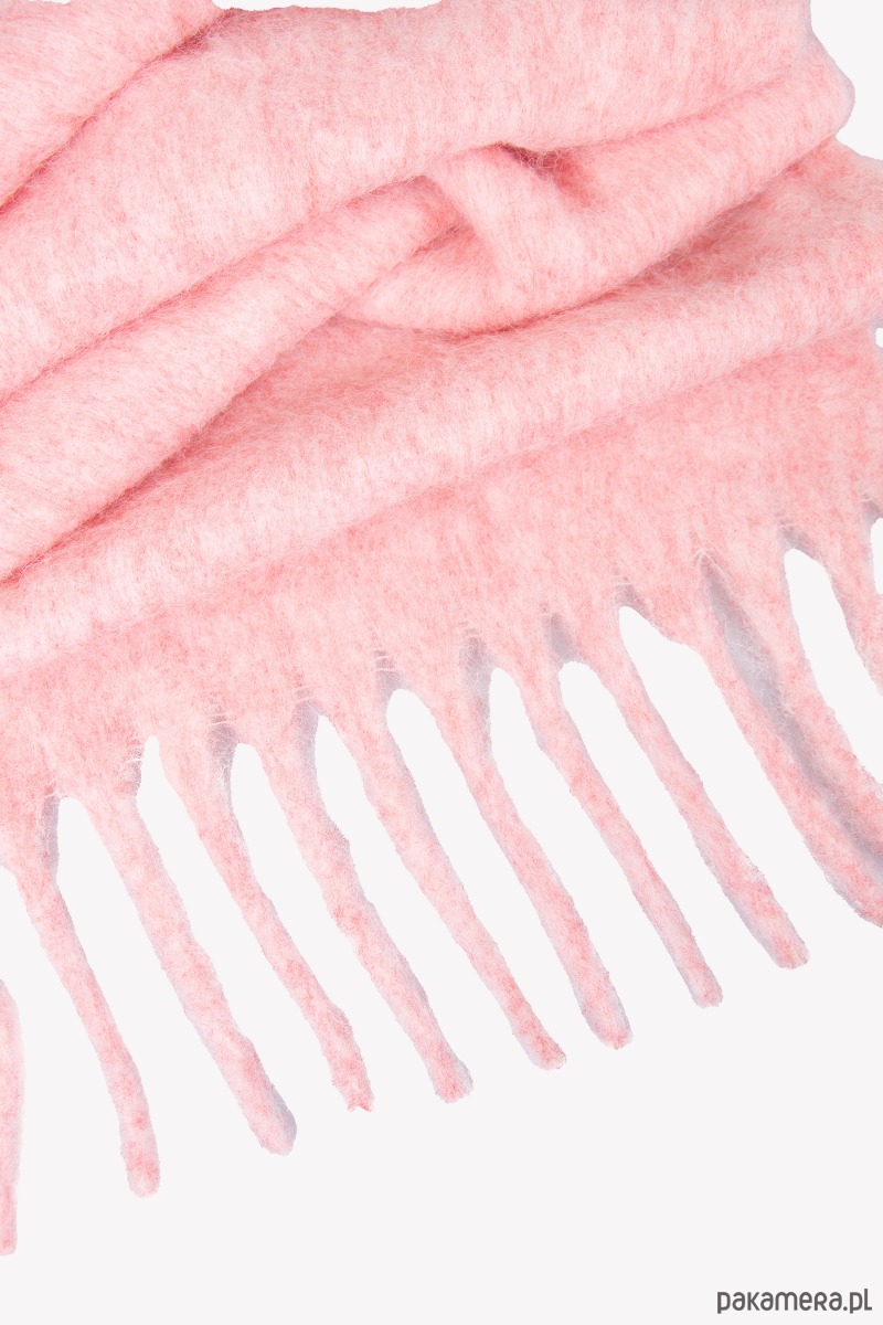 Klasyczny szal w odcieniu różu, co nadaje mu subtelnego, ale jednocześnie wyrazistego charakteru. Szal ma delikatne frędzle na brzegach, które dodają mu lekkości i przytulnego, nieformalnego stylu. Dzięki swojej grubości doskonale otula szyję, zapewniając ciepło i komfort w zimowe dni. Idealny do zestawienia z płaszczem, kurtką czy swetrem, zarówno na co dzień, jak i do bardziej eleganckich stylizacji.