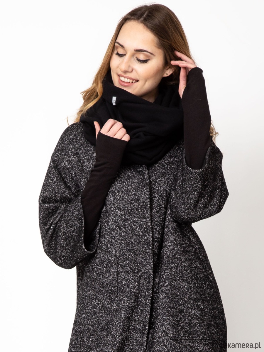 Gruby, zimowy komin dresowy w kolorze czarnym. Komin uszyty został z grubej dzianiny dresowej - puszystej, nadaje się na okres jesienno - zimowy. Komin jest bardzo przyjemny w dotyku, ładnie się układa, jest puszysty. Brzegi są ładnie wykończone ściegiem maszynowym, nie strzępią się.