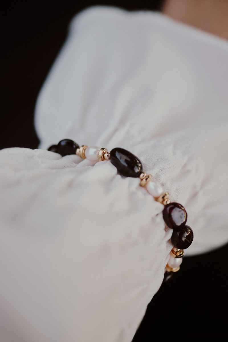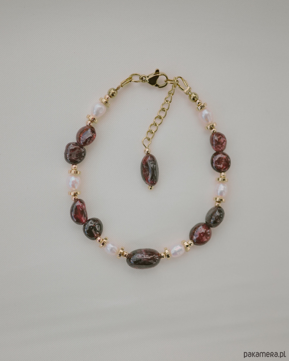 Ciężka bransoleta z naturalnych granatów i pereł ♔