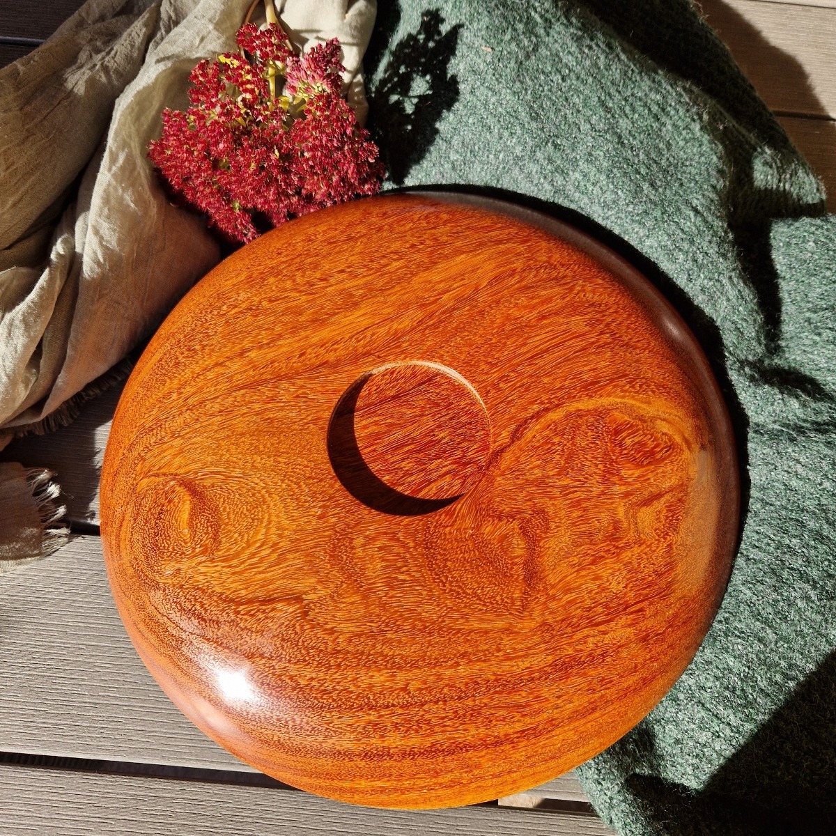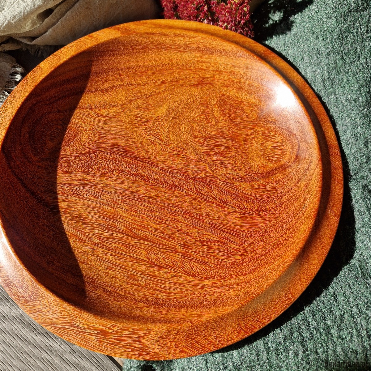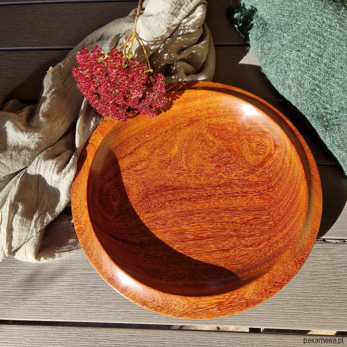 Ta ciężka patera z brazylijskiego drewna cumaru idealnie nadaje się do podawania potraw podczas bufetu lub będzie stanowić mocny akcent na środku stołu. Wzór słojów przypomina futro egzotycznego zwierzęcia. Talerz jest bardzo ciężki ponieważ cumaru to gęste, twarde i wytrzymałe drewno. Czerwono-brązowe, wirujące usłojenie mówi samo za siebie, dlatego ograniczyliśmy projekt do minimum, dodając jedynie lekko wklęsłą krawędź. Ten produkt charakteryzuje się prawdziwą prezencją i pomimo swojej prostoty wygląda na drogi i elegancki. Pod gładką powierzchnią nadal można wyczuć słoje drewna, co w dotyku jest bardzo satysfakcjonujące. Wykonany z drewna pochodzącego z recyklingu i pokryty powłoką bezpieczną dla żywności, jest zarówno ekologiczny, jak i praktyczny. Konserwacja to umycie ręcznie, dokładne wysuszenie i posmarowanie odrobiną oleju.