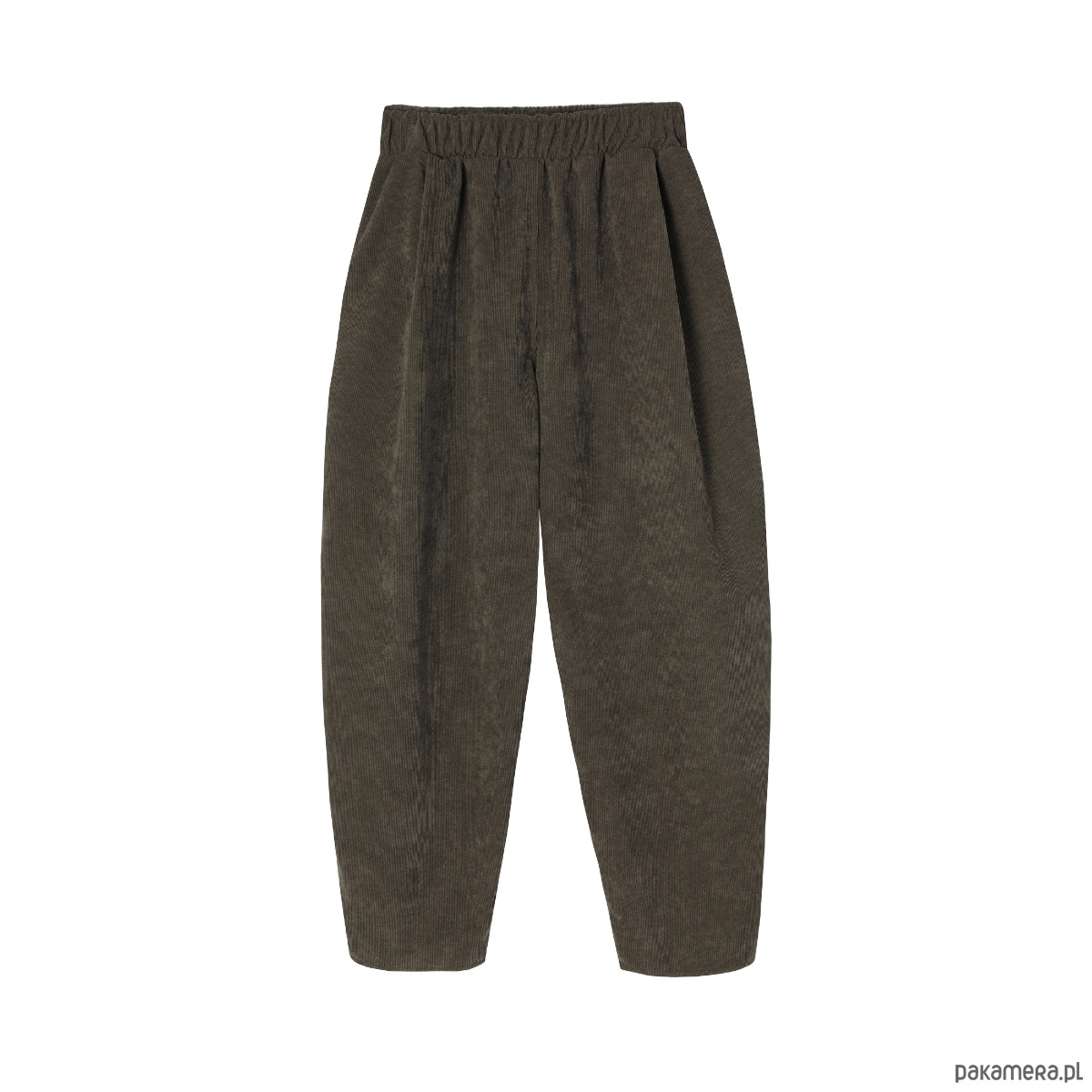 ygodne spodnie ze zwężaną nogawką o długości 7/8. Wykonane z bawełnianego sztruksu. Spodnie świetnie się układają i są bardzo przyjemne w użytkowaniu. Tkanina, z której uszyty jest model Korda jest miękka i niezbyt gruba.
