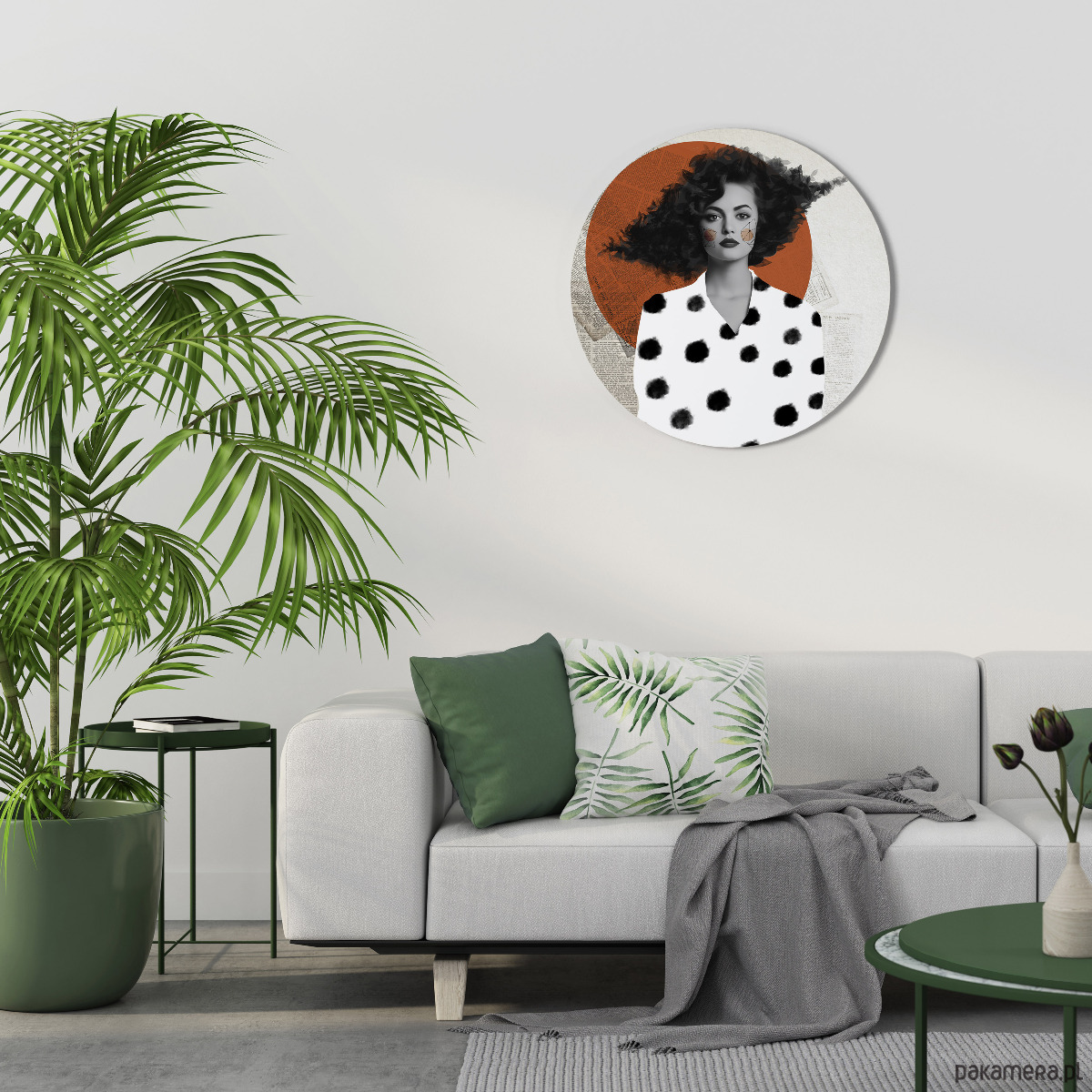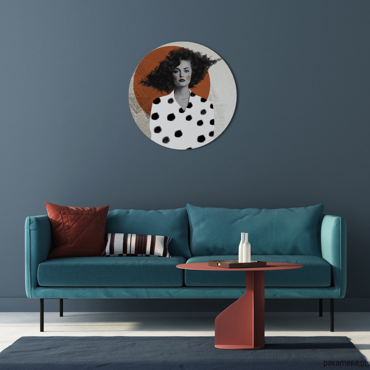 Wprowadź do swojego wnętrza wyjątkowy charakter dzięki eleganckiemu okrągłemu obrazowi. To nowoczesna dekoracja ścienna, która idealnie komponuje się z różnymi stylami aranżacji – od minimalistycznych, przez klasyczne, aż po boho.