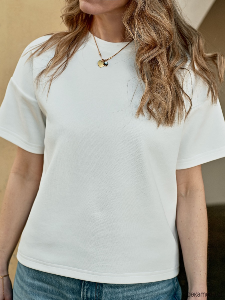 Kolor klasyczny off white, prosty, luźniejszy krój oraz 100% bawełny. T-shirt Classy to ponadczasowy element garderoby, który na pewno warto mieć w szafie.