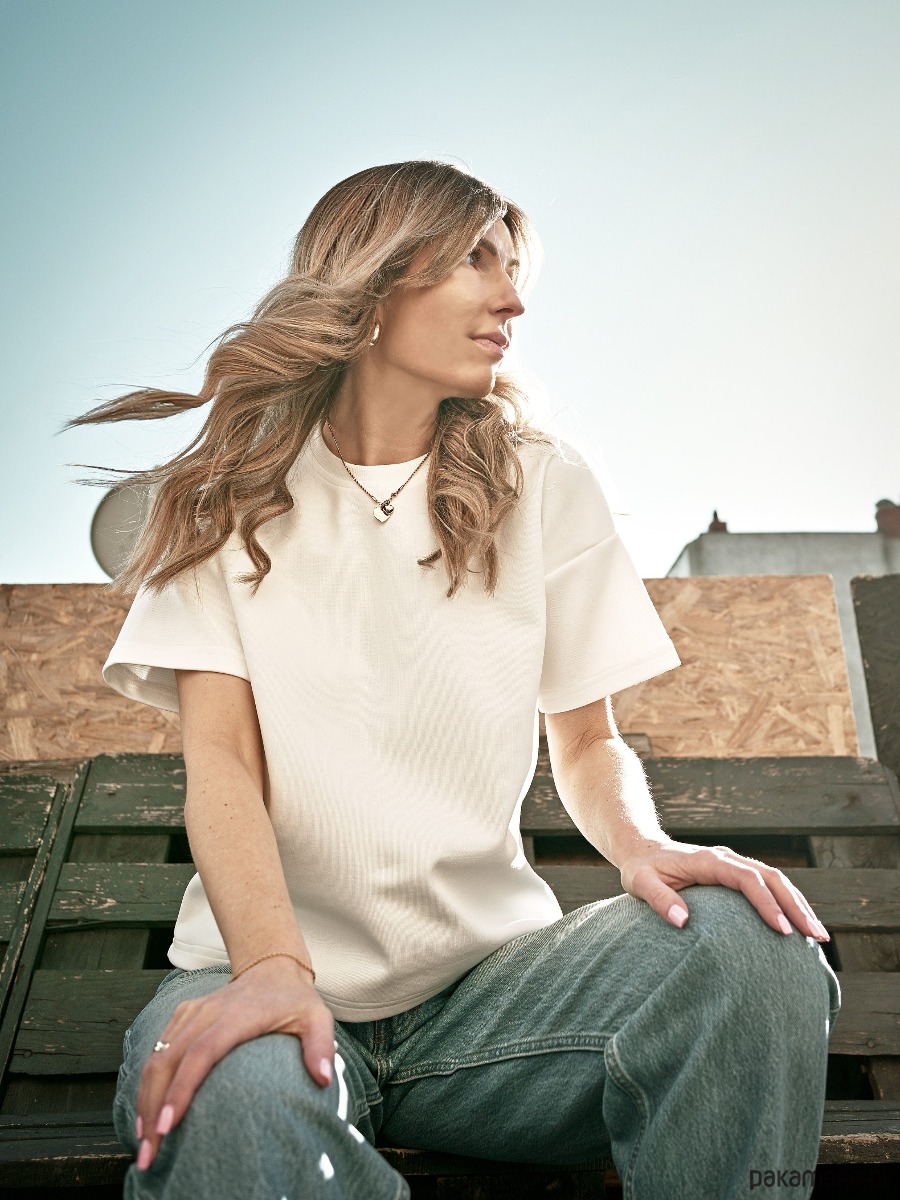 Kolor klasyczny off white, prosty, luźniejszy krój oraz 100% bawełny. T-shirt Classy to ponadczasowy element garderoby, który na pewno warto mieć w szafie.