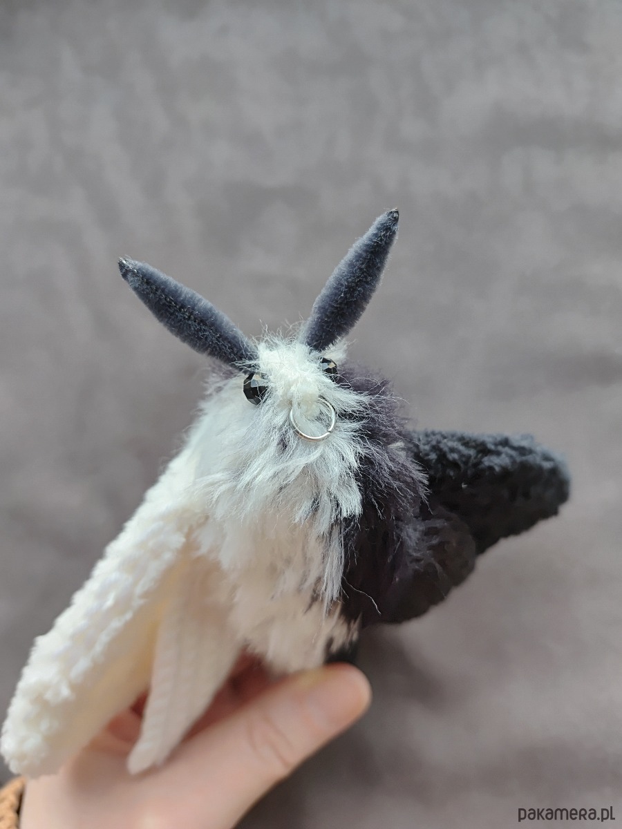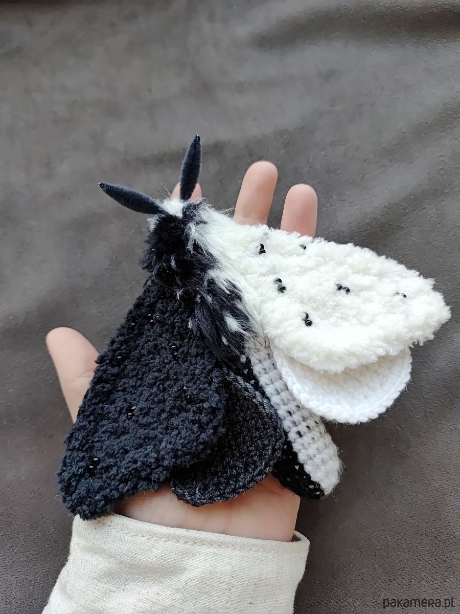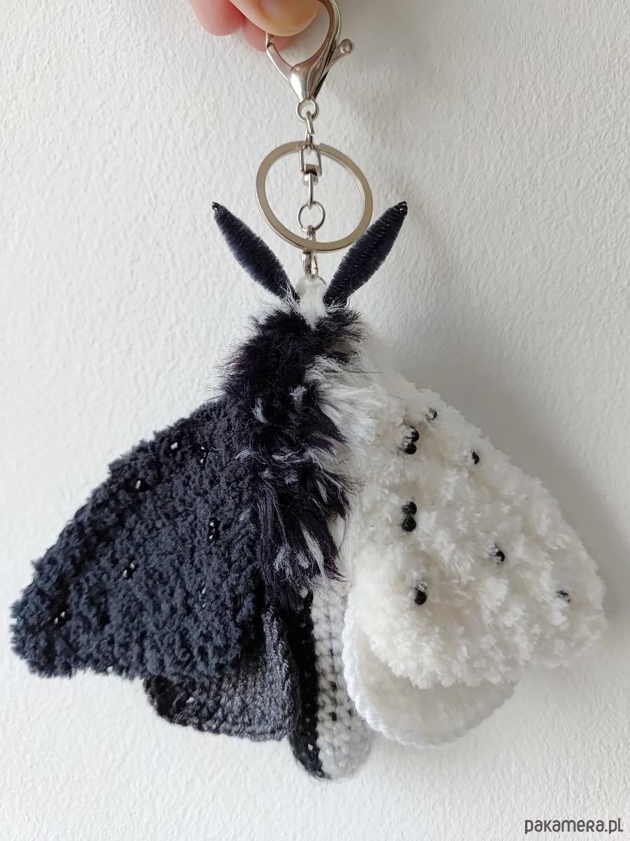 Ćma biało czarna tekstylna zawieszka do torby / dekoracja