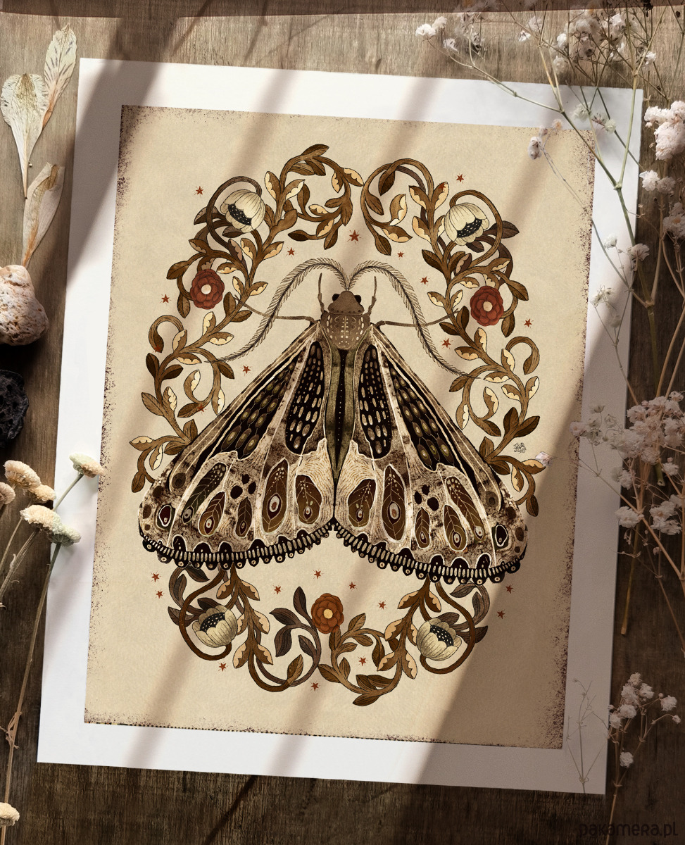 Ćma retro plakat, plakat botaniczny, plakat boho, plakat motyle ćmy