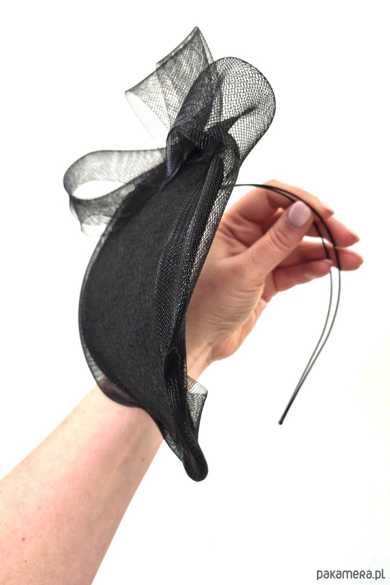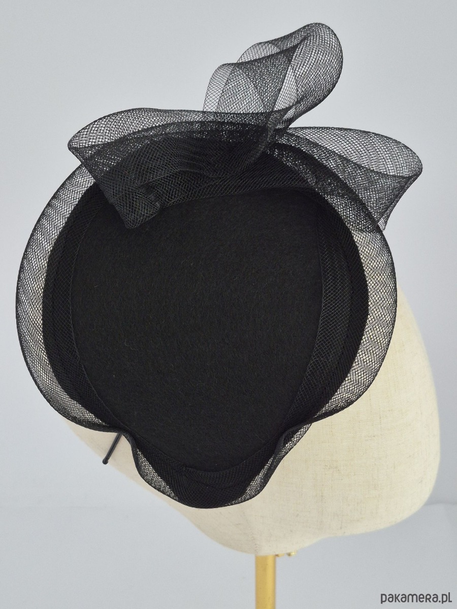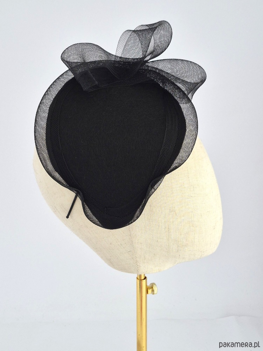 Zdobienie: Brzegi bazy oraz góra ozdobione są sztywną krynoliną, która tworzy lekką, przestrzenną formę i subtelnie kontrastuje z cięższym filcem.
