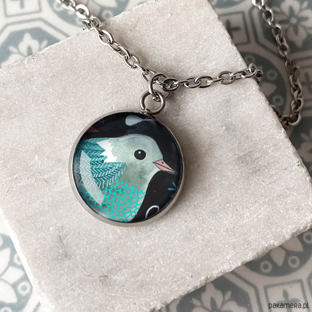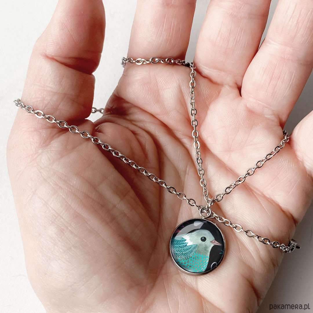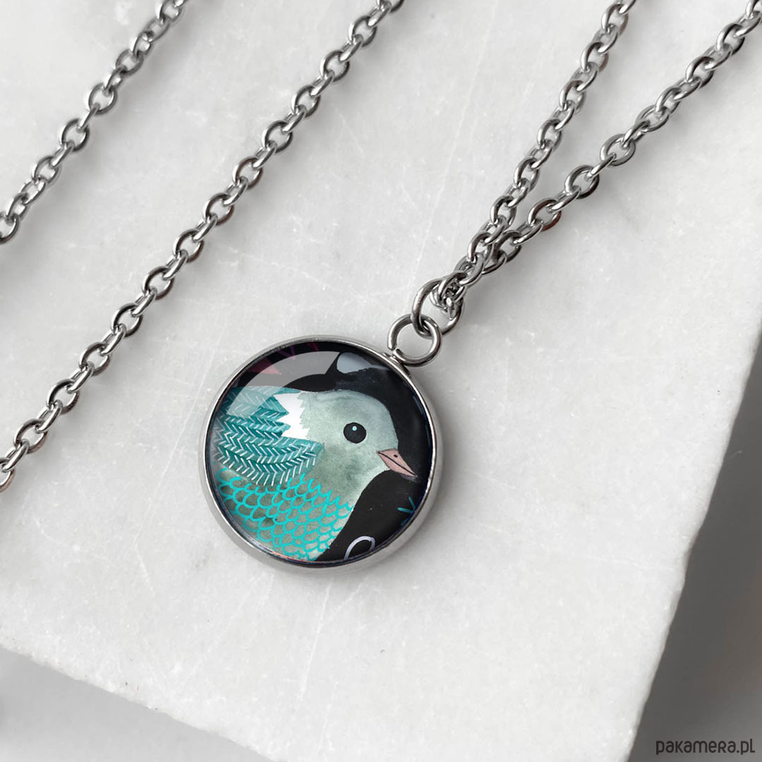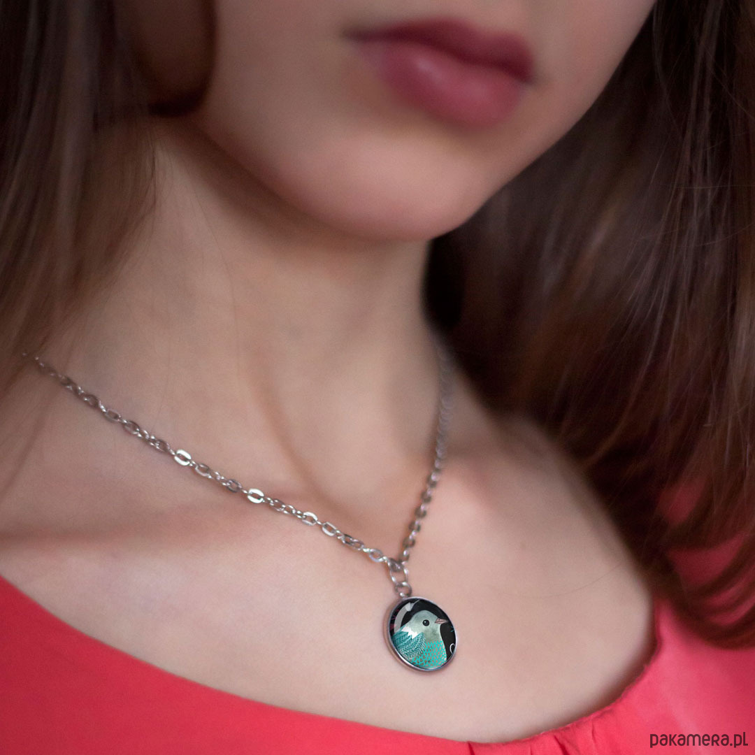 Naszyjnik z medalionem, w którym umieszczona jest kolorowa, autorska ilustracja pod szkiełkiem to elegancki i kobiecy dodatek, który idealnie wpisuje się w duch stylu casual.