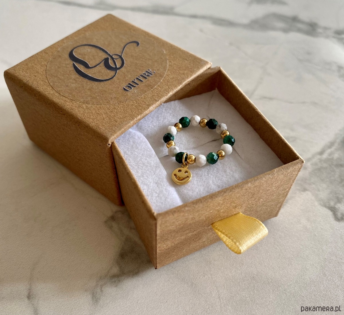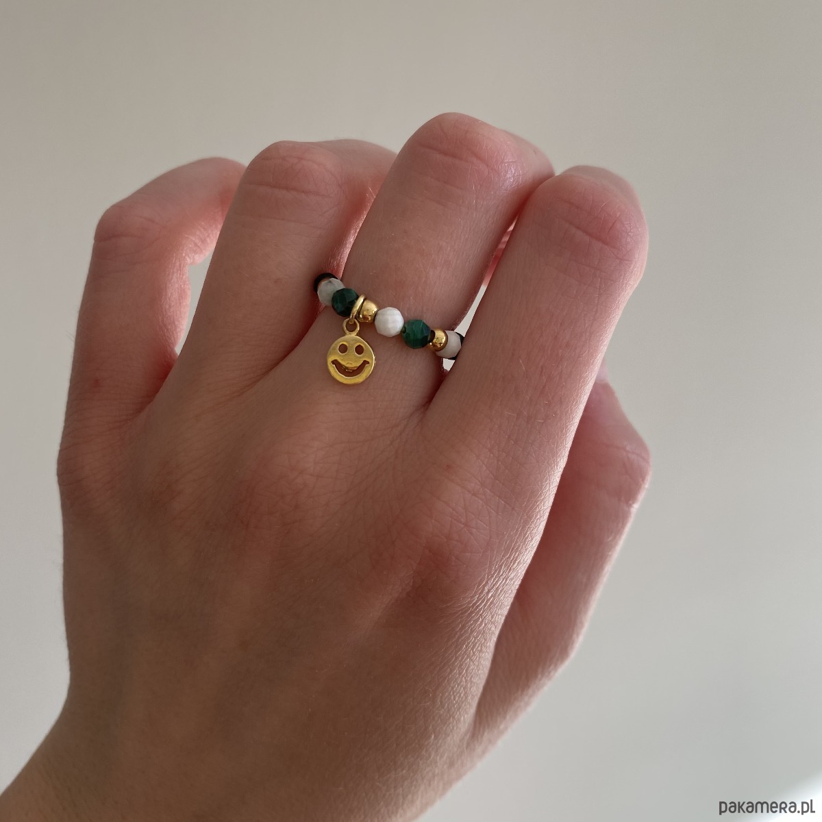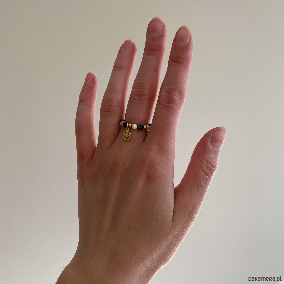 W przypadku pierścionków na żyłce elastycznej, nie musisz aż tak dokładnie znać swojego rozmiaru. Dzięki swojej elastyczności, pierścionek może się dostosować do Twojego palca.