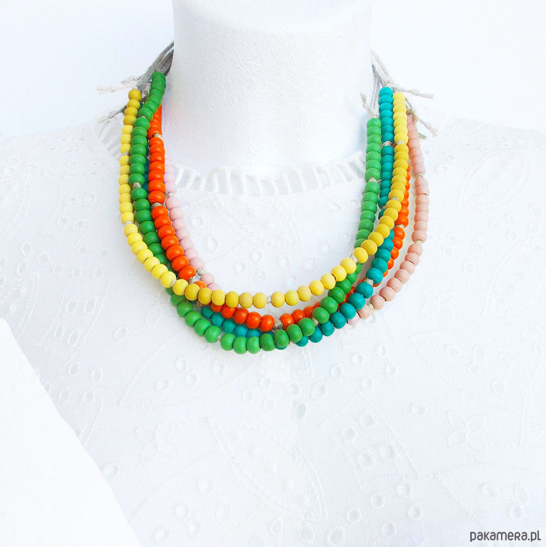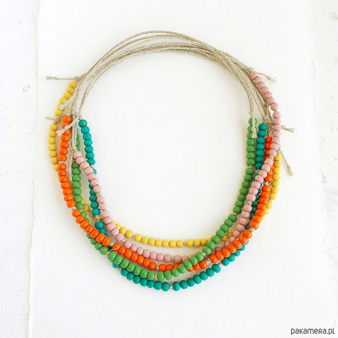 kolory naszyjników: żółty, pomarańczowy, jasnoróżowy, zielony, niebieski