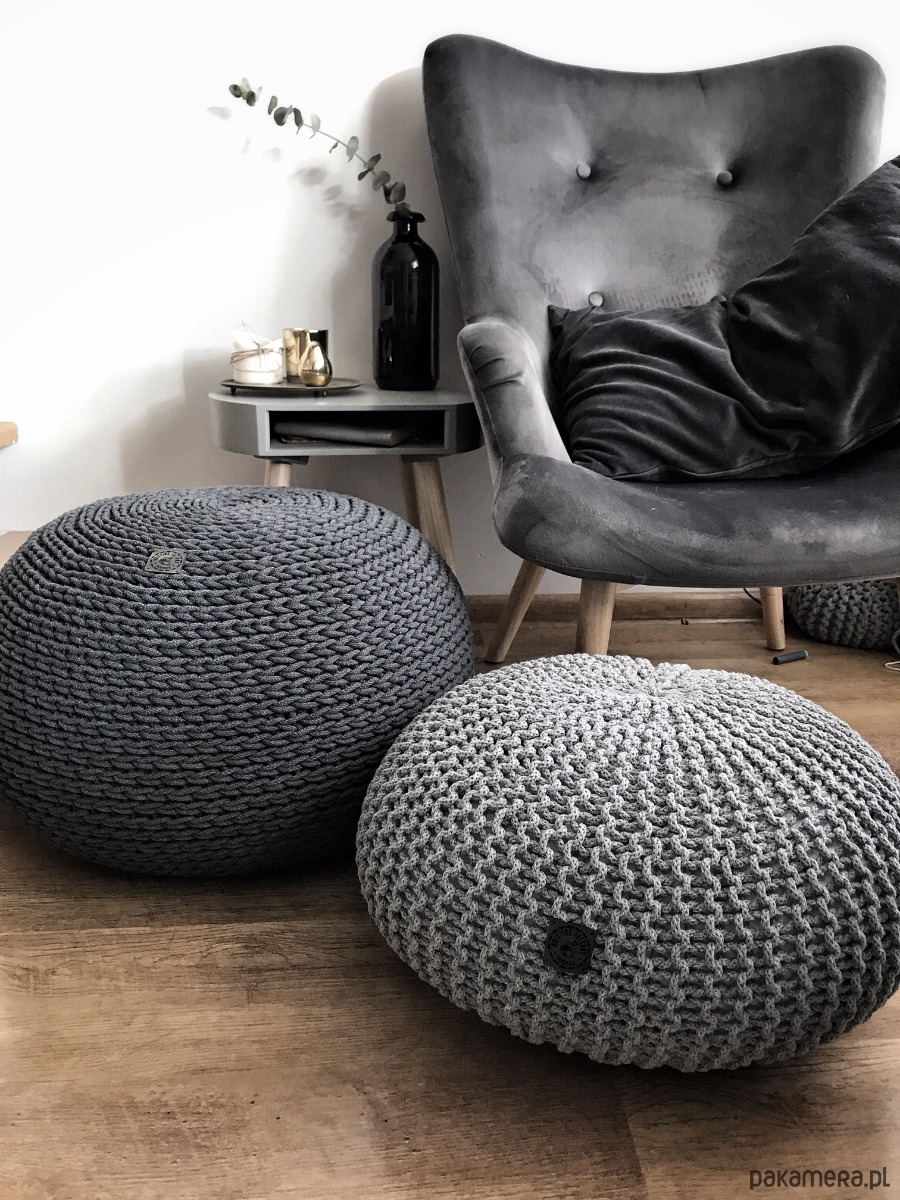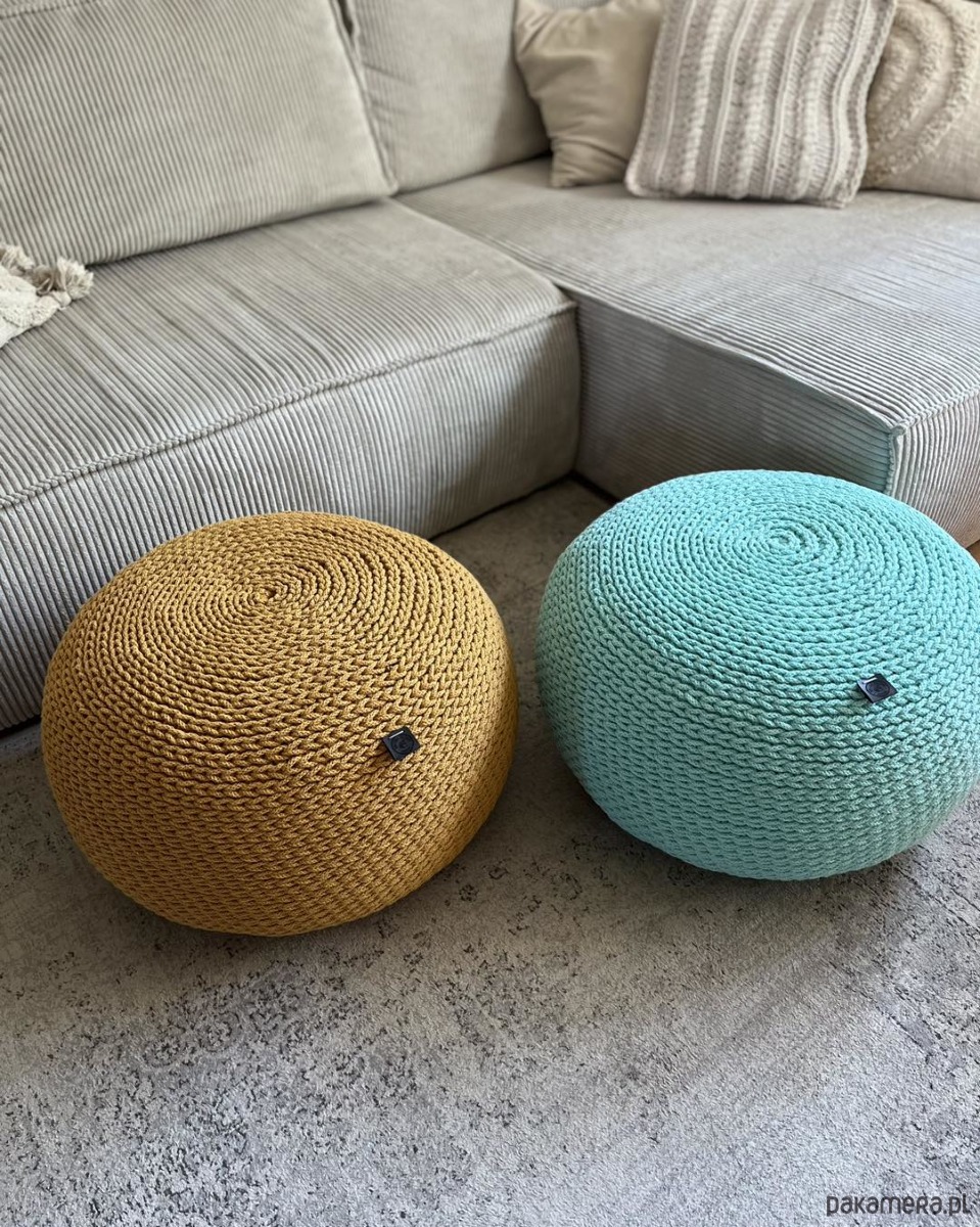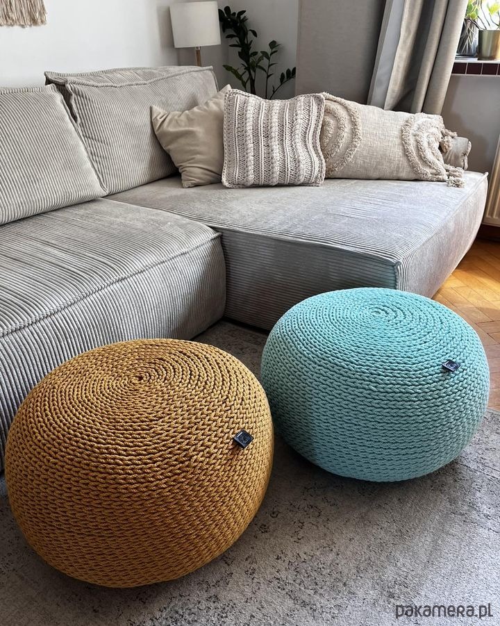 Dziergana pufa to nie tylko wygodne siedzisko, ale dzięki wyrazistemu ściegowi i kolorowi, będzie stanowiła też prawdziwie dekoracyjny, zwracający uwagę element. Ten pufy będzie prawdziwą ozdobą każdego wnętrza. Sprawdzi się w salonie ,pokoju dziecięcym, przedpokoju lub tarasie, jako siedzisko, podnóżek, stolik lub doskonałą formą zabawy dla dzieci. Idealnie wkomponuje się w przestrzenie w stylu skandynawskim, rustykalnym i wielu innych.