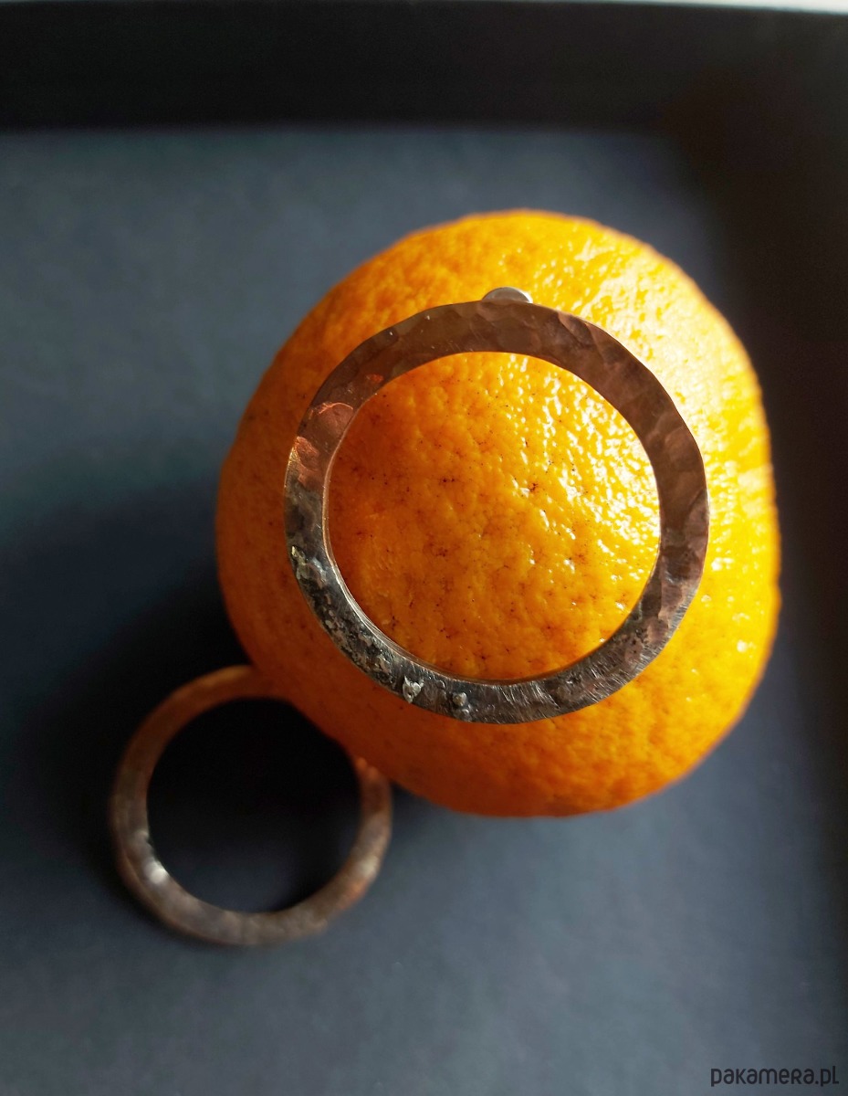 Miedź jest młotkowana, na niej nalane srebro, później oksydowane by podkreślić fakturę która powstała.