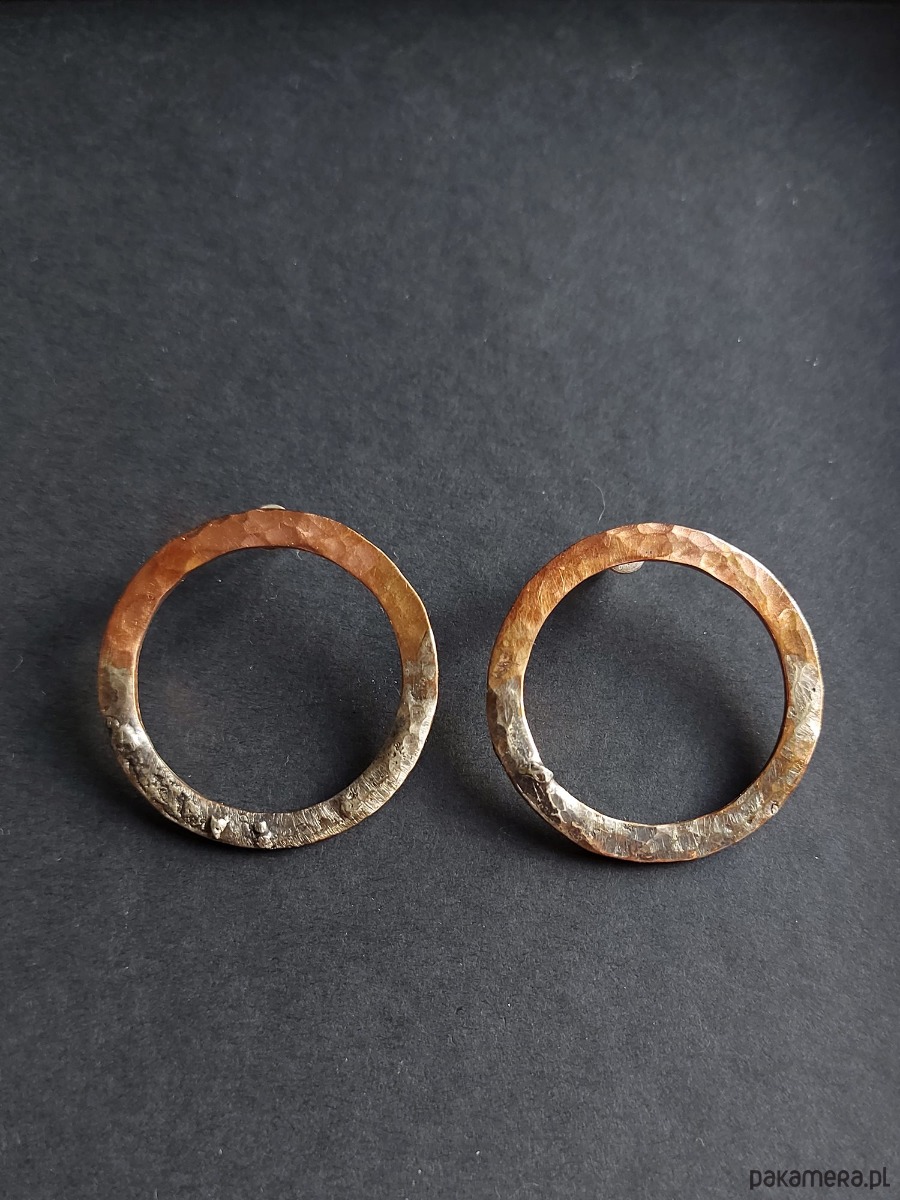 COPPER koła XL/ kolczyki z miedzi i srebra