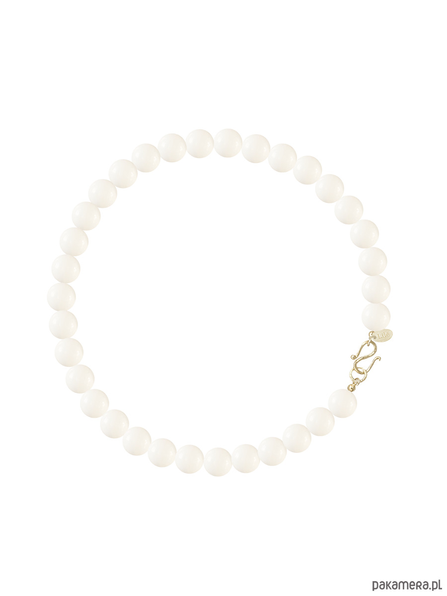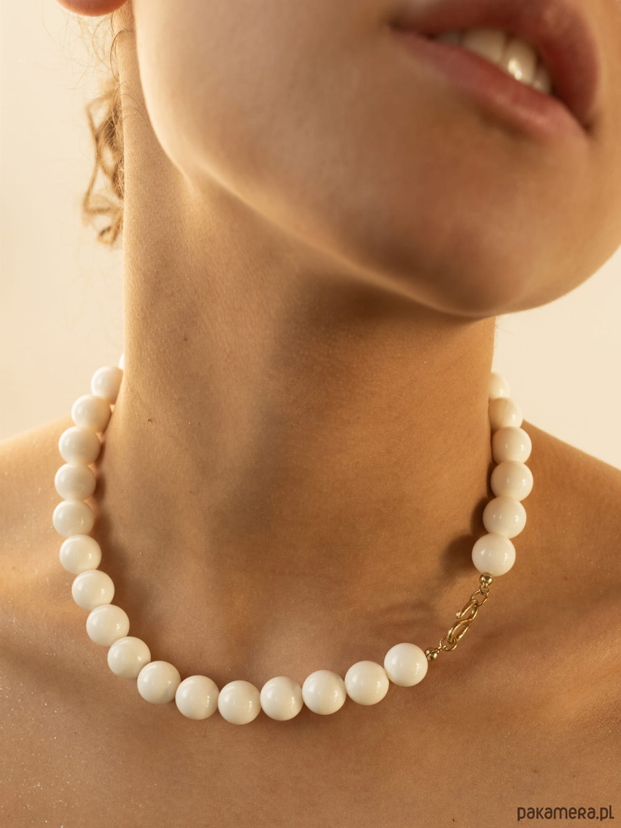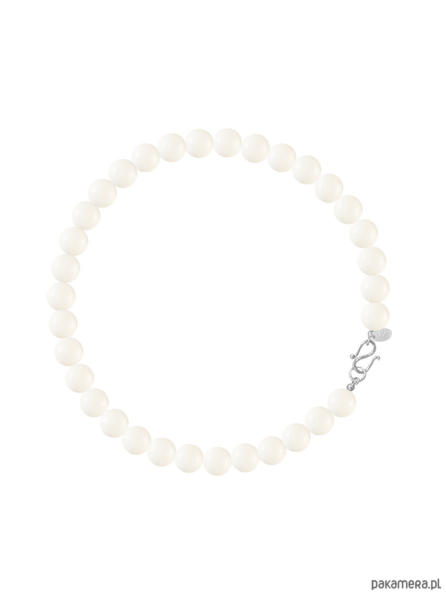 Naszyjnik wykonany z naturalnych kamieni (biały koralowiec), z ozdobnym srebrnym zapięciem, idealny do letnich, minimalistycznych stylizacji