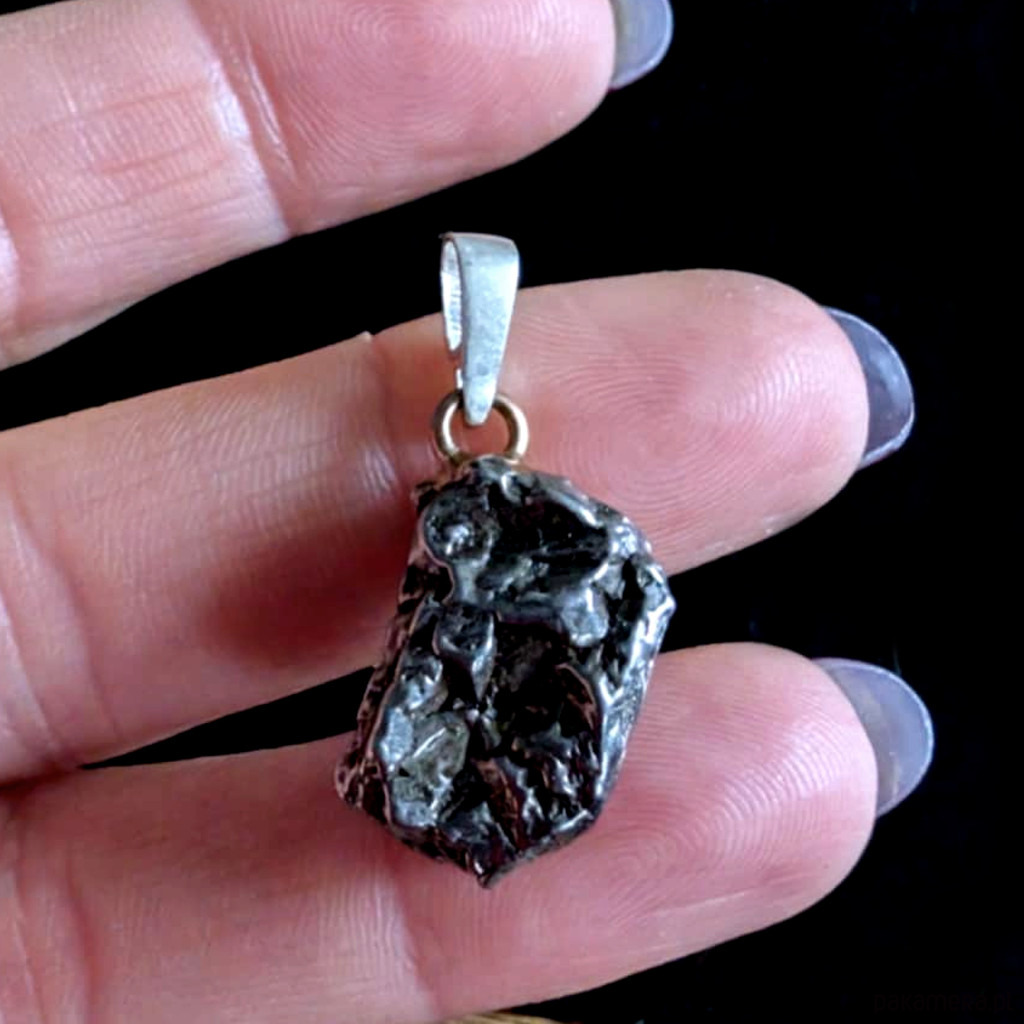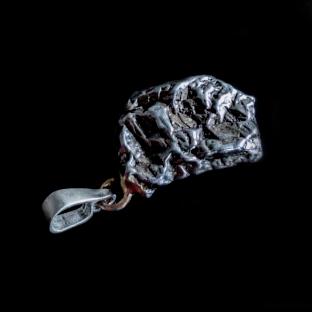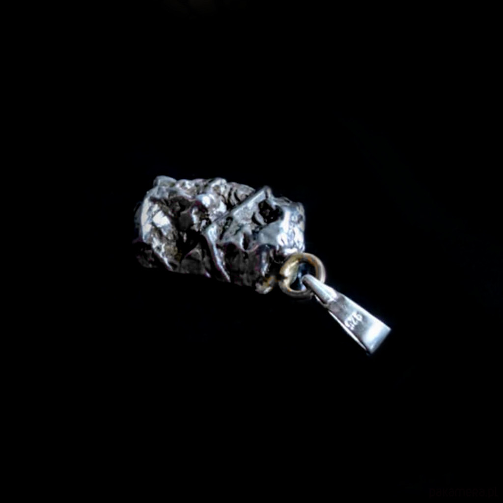 Wisiorek z meteorytem żelaznym Campo del Cielo, który znaleziono w 1576 roku w Argentynie. Krawatka srebro 925 Uniwersalny, dla niego lub dla niej. Wymiary 20 x 13 mm. Długość max 31 mm. Waga wisiora 8g. Do meteorytu dołączona zostanie metryka z datą, miejscem spadku i wagą. Wisiorek zostanie zapakowany w ozdobne pudełeczko.