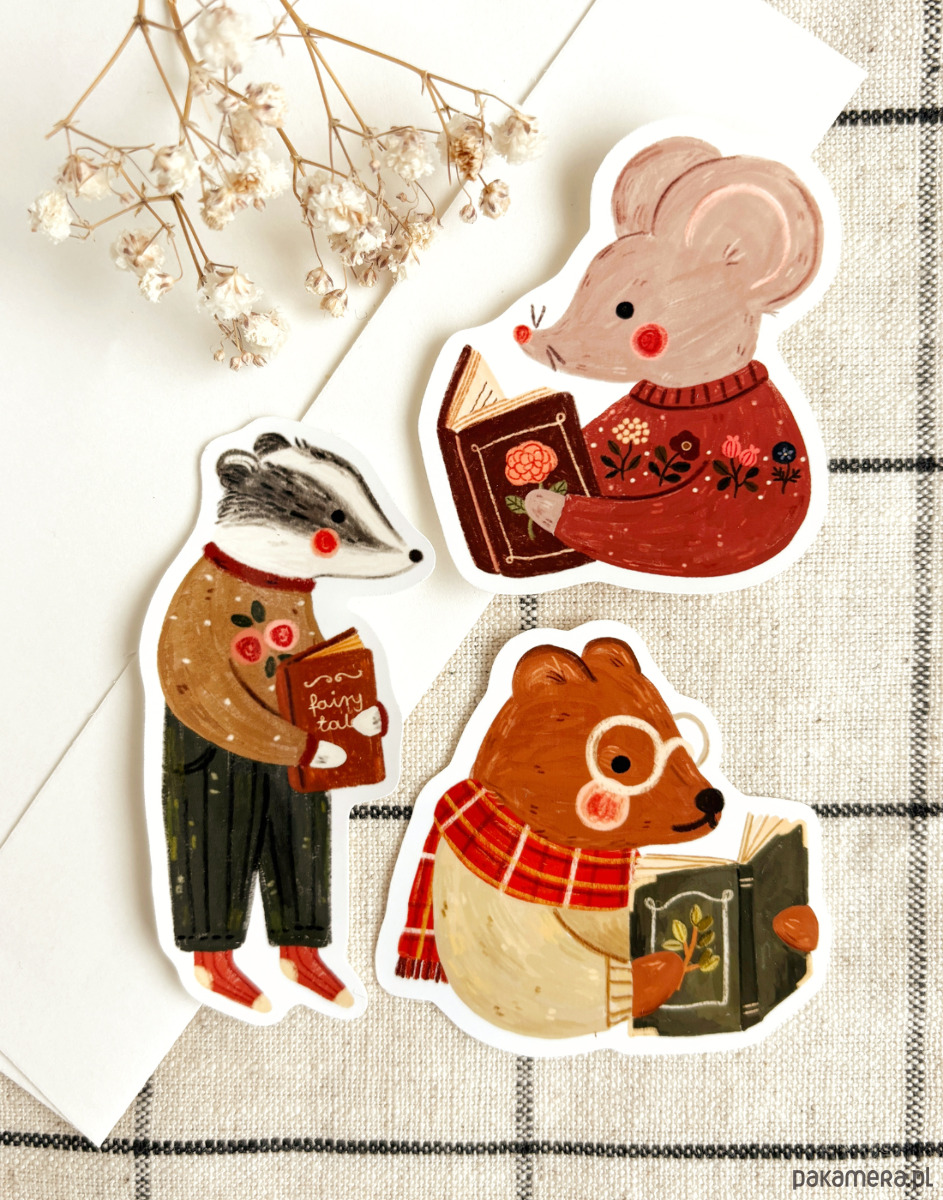 Uroczy zestaw naklejek winylowych dla wszystkich miłośników spokojnych wieczorów, przytulnych kącików i dobrych książek 📚🧡 Trzy słodkie zwierzątka pogrążone w lekturze będą idealną ozdobą planera, dziennika, etui na książkę czy laptopa. To także świetny pomysł na drobny prezent dla każdego mola książkowego i wielbiciela przytulnych klimatów.