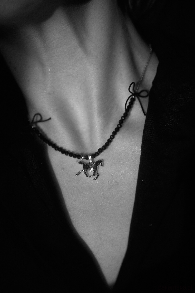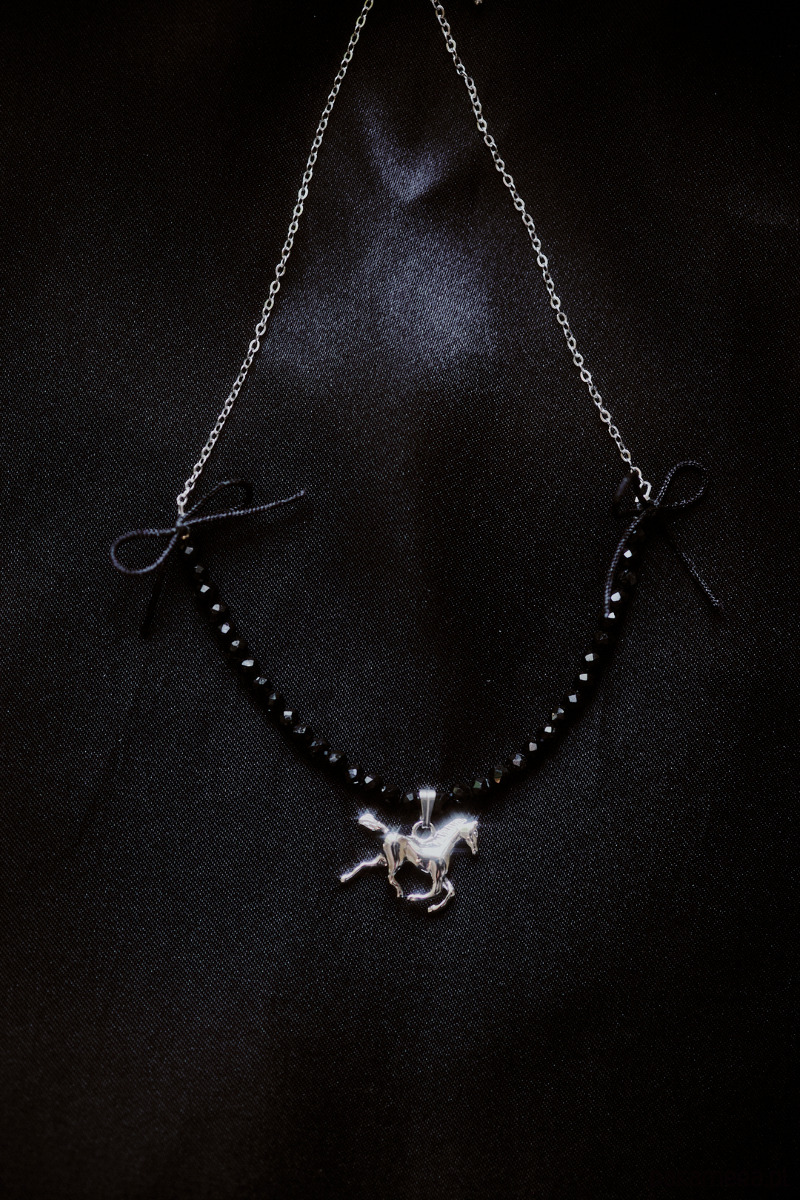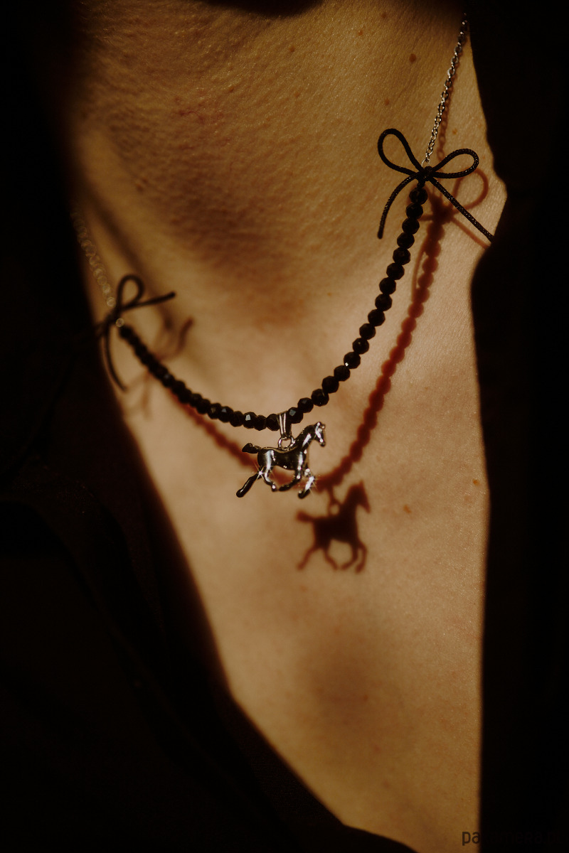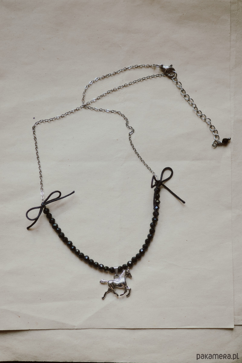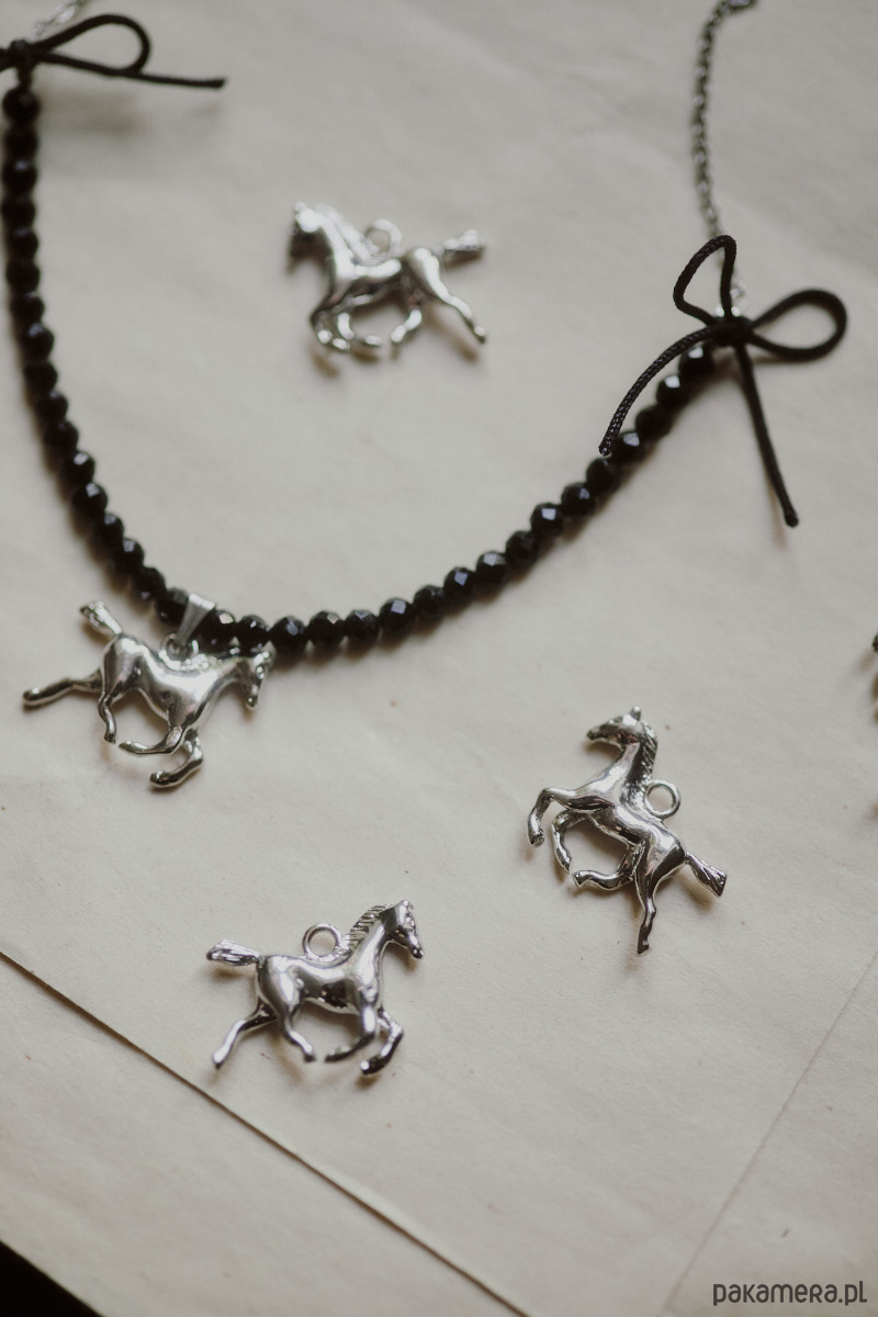 Cremello Black, naszyjnik z koniem, onyks
