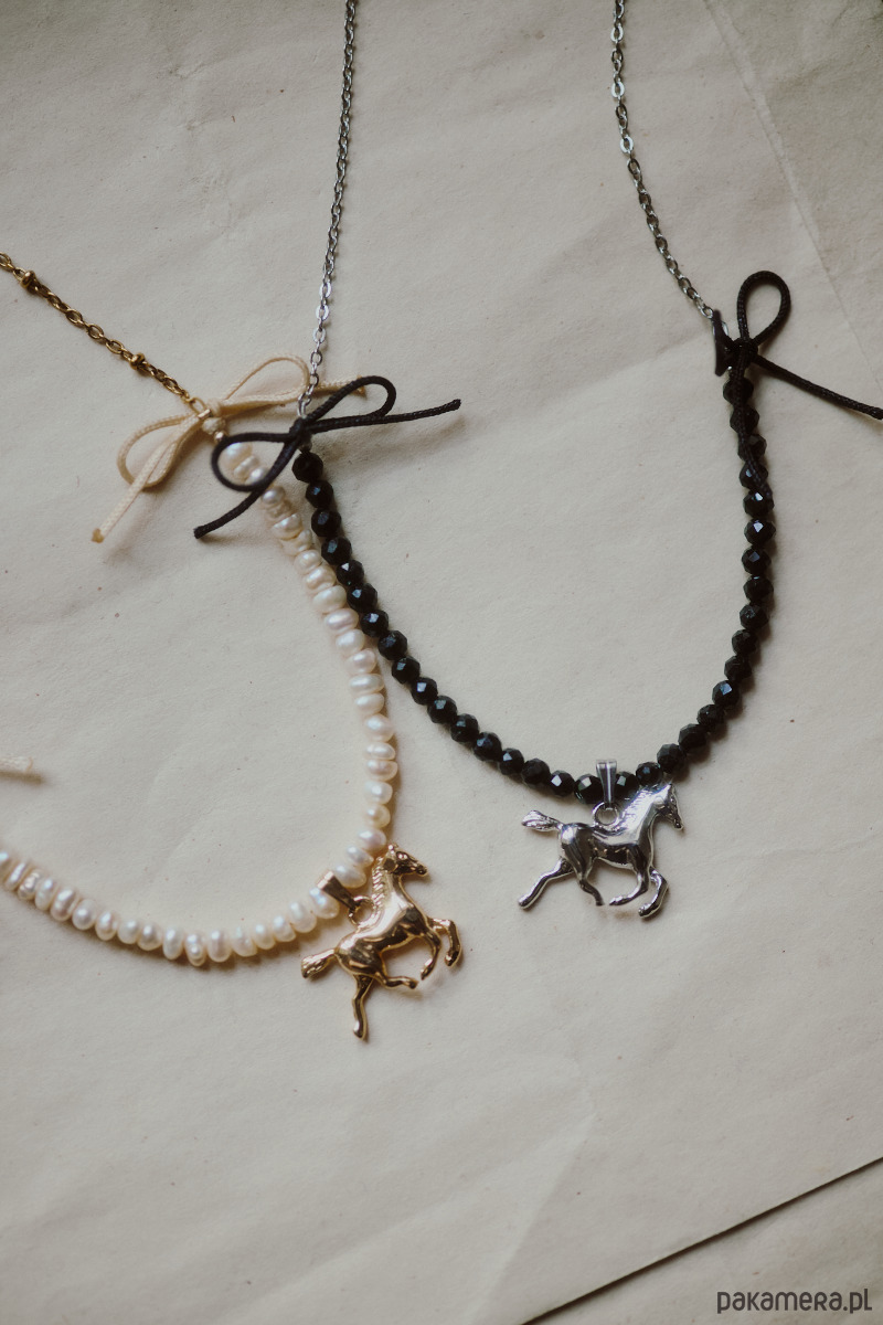Koń to istota dzika, nieokiełznana, błyskotliwa, witalna. Nie podlega żadnemu panu ani prawu, wytycza własną ścieżkę. Koń to symbol, który inspiruje do podejmowania inicjatyw, akceptowania nagłych zmian i podążania za ideami, które do tej pory formowały w ukryciu. Naszyjnik Cremello symbolizuje odwagę i wolność, czasem poprzez bunt. Zamknięty jest jednak w bardzo kobiecej formie z perłami i kokardkami. Idealnie łączy słodkość i ogień kobiety! Ten naszyjnik jest dla Ciebie jeśli jednocześnie jesteś kobieca, delikatna i urocza, ale znasz swoje granice, potencjał i nikt nie może ograniczać Twojej wolności ♡