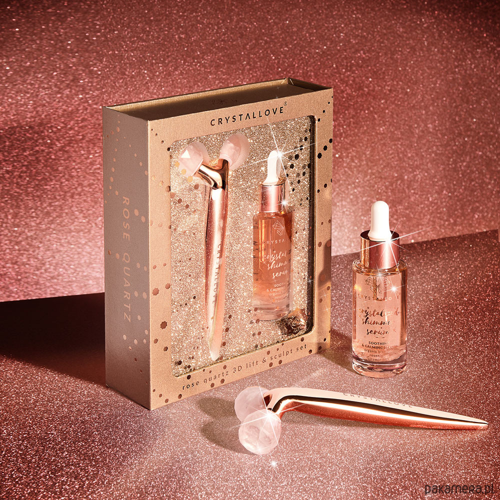 CRYSTALLOVE Rose quartz 3D lift & sculpt set - masażer liftingujący i serum -
