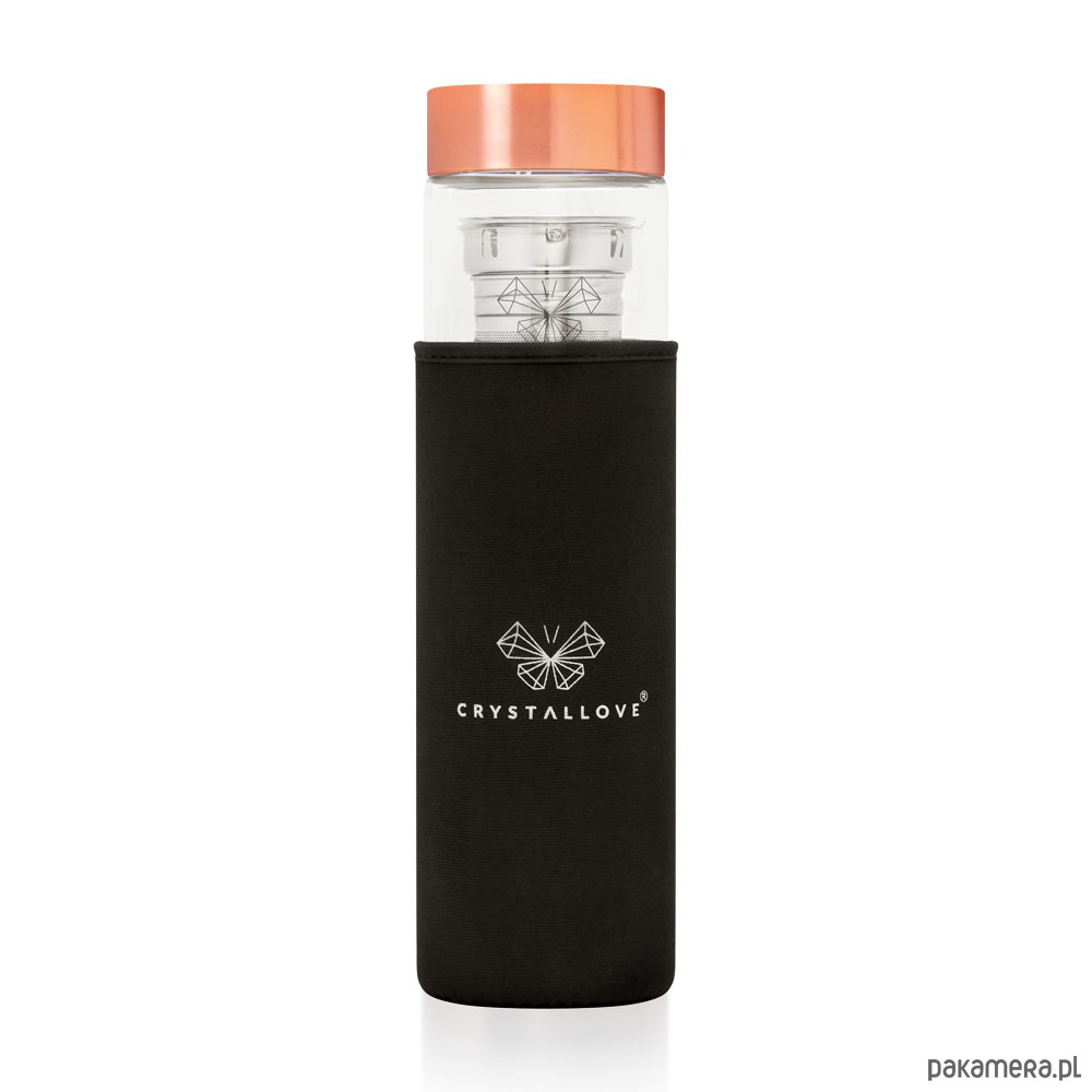 CRYSTALLOVE Szklana butelka na wodę i herbatę z kryształem górskim