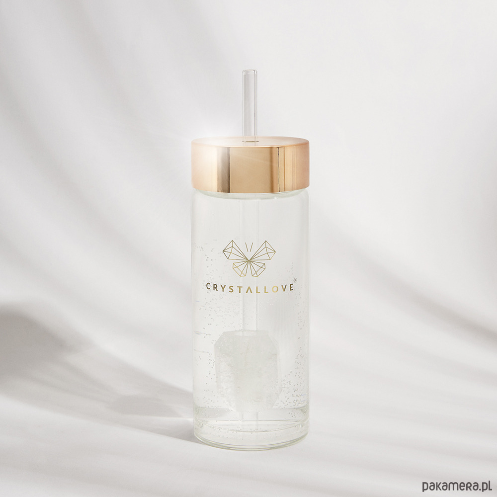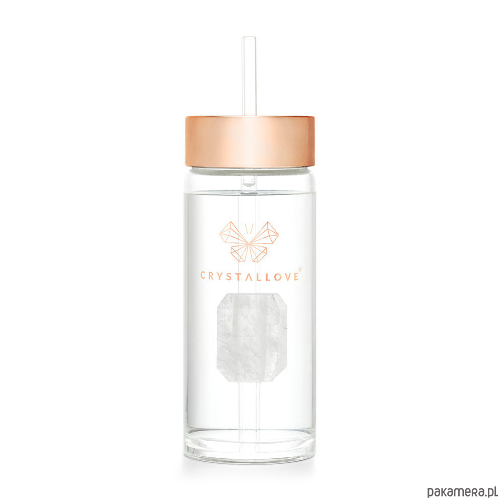 CRYSTALLOVE Szklana butelka na wodę z kryształem górskim i słomką 400ml