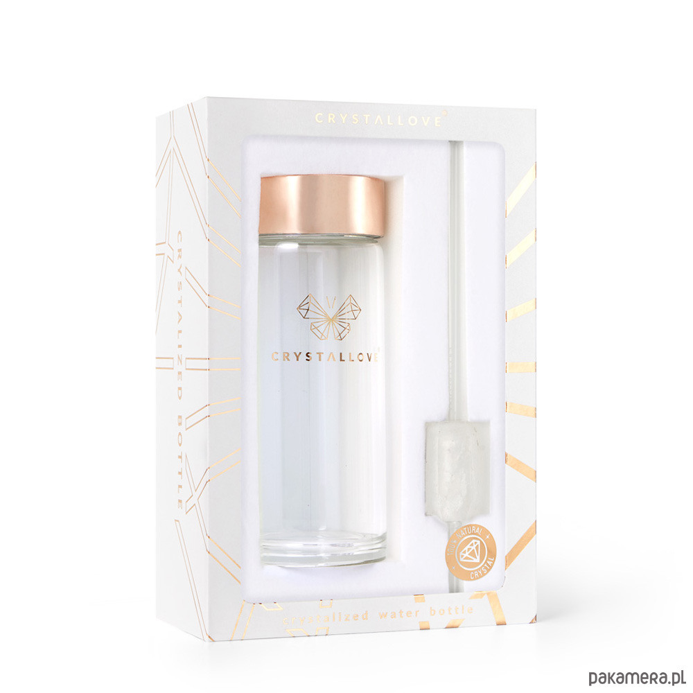 Odkryj wyjątkową harmonię ciała, umysłu i stylu dzięki naszej szklanej butelce na wodę z kryształem górskim. Butelka jest nie tylko funkcjonalna ale także łączy elegancję z właściwościami naturalnego kryształu górskiego. To coś więcej niż butelka – to Twój codzienny rytuał zdrowia i dobrego samopoczucia!