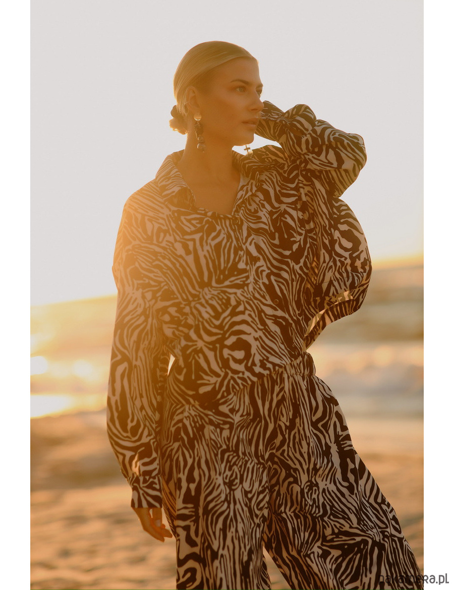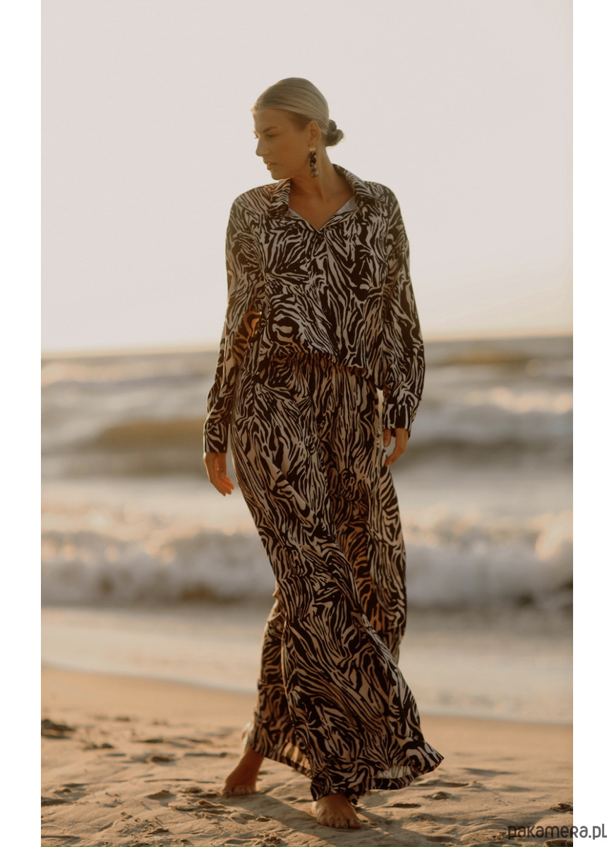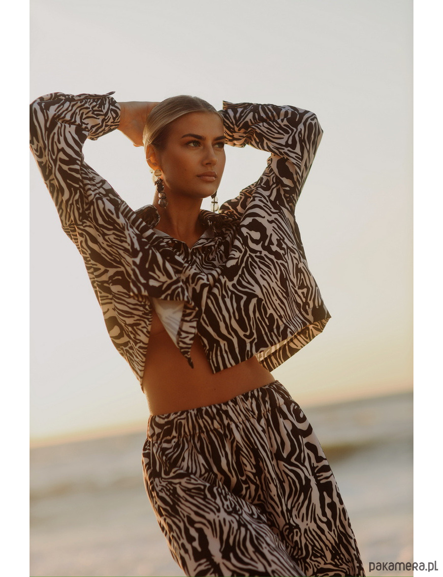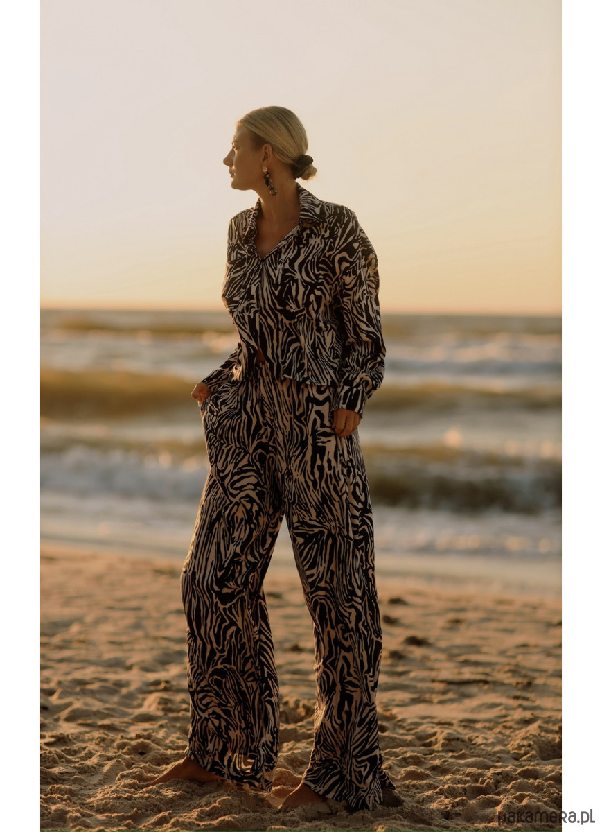 CS - Spodnie na gumkę SAFARI czarno beżowa zebra .