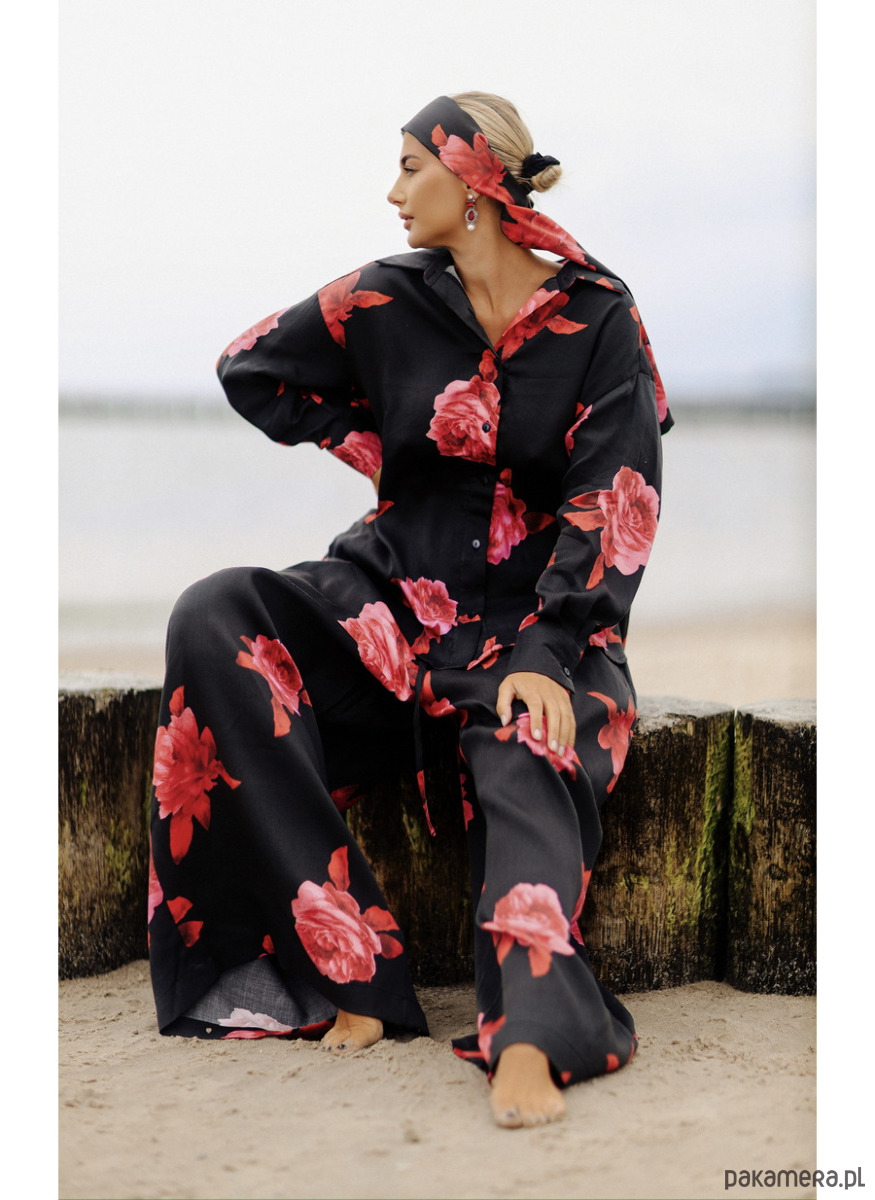 CS - Wiskozowa koszula czarna w czerwone róże ROSE