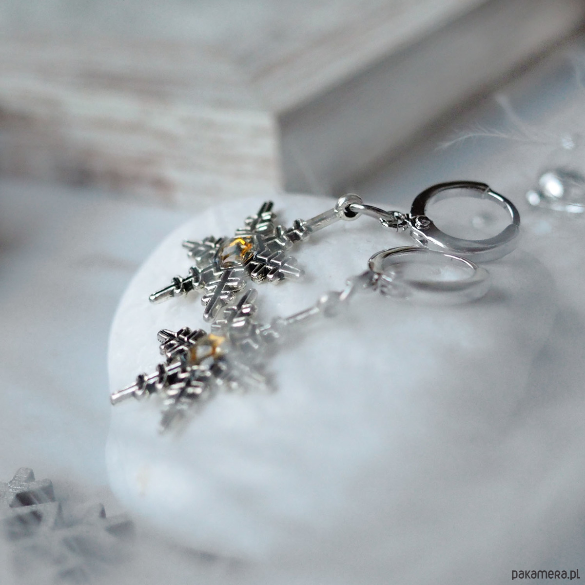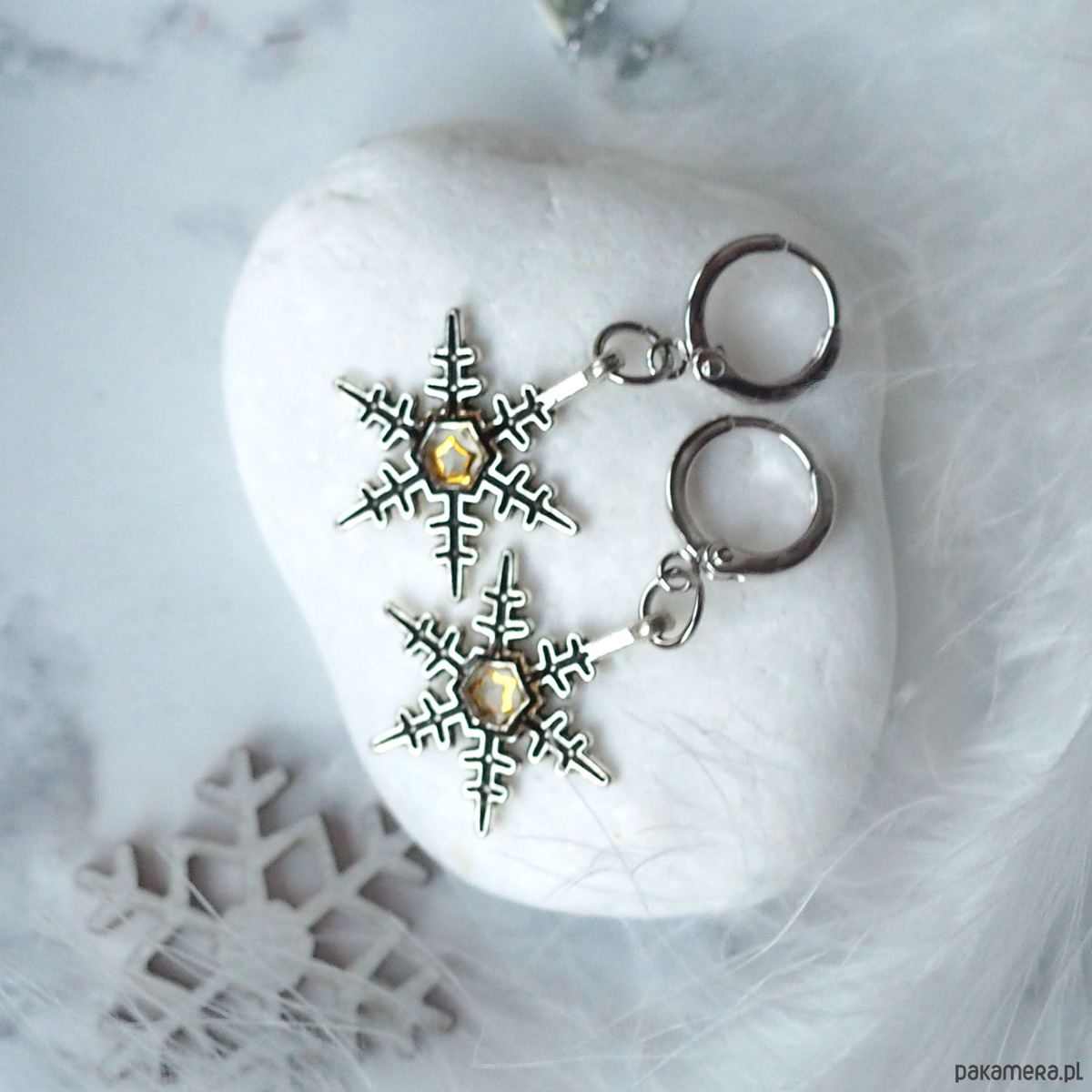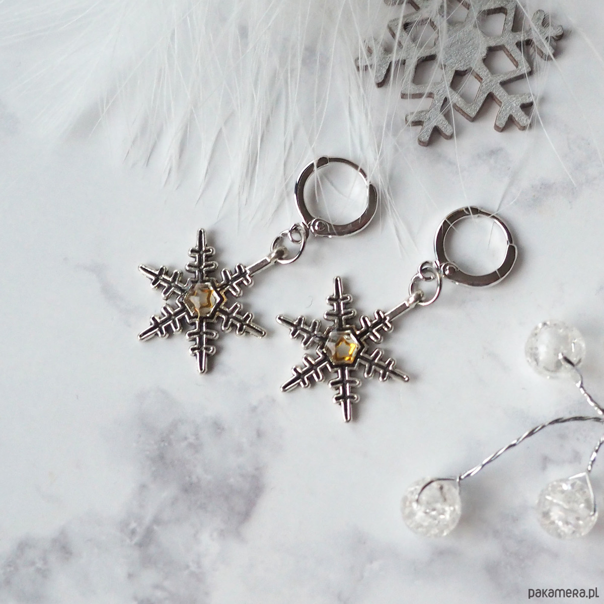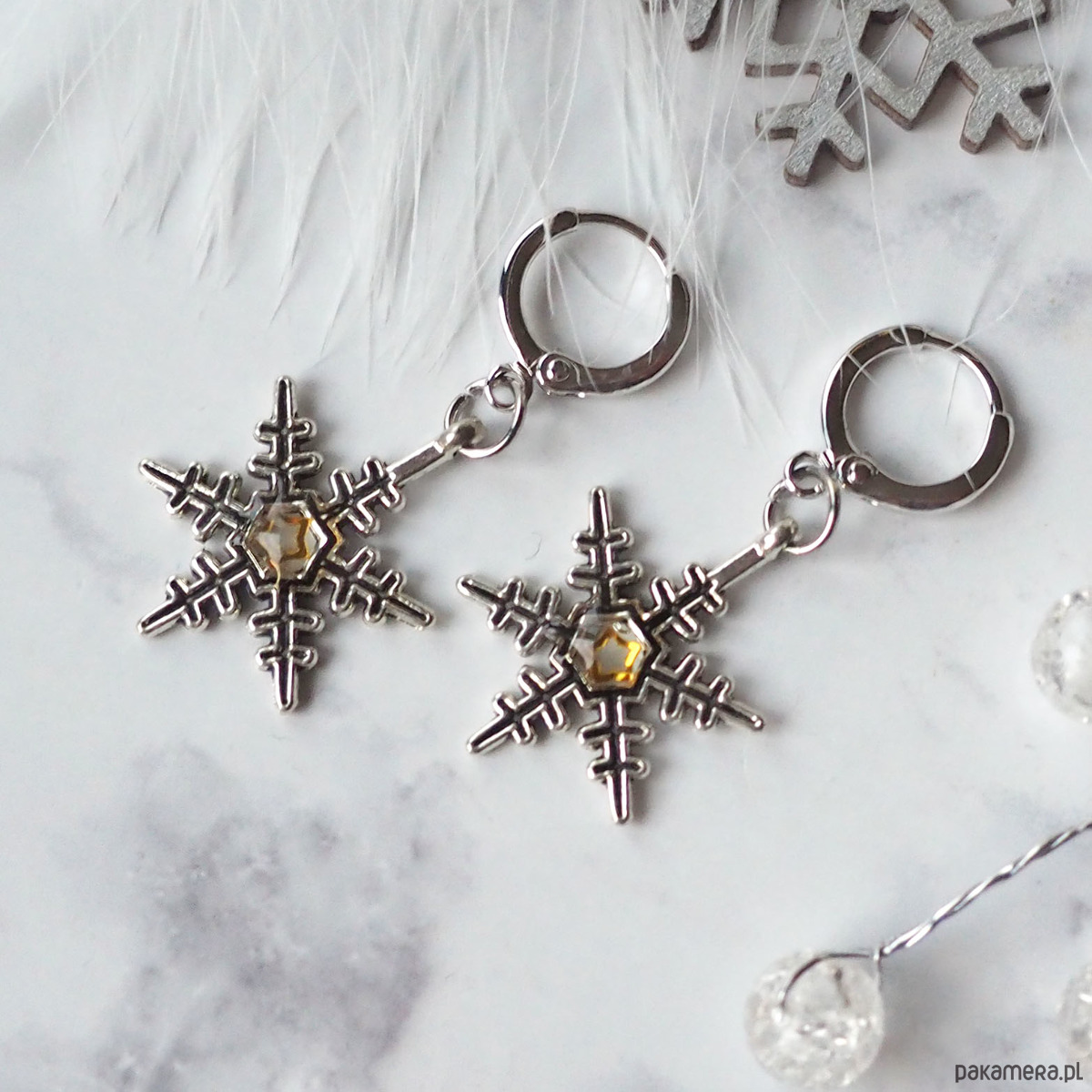 ŚLICZNE, ELEGANCKIE, ŚWIĄTECZNE KOLCZYKI Z MOTYWEM ŚNIEŻYNEK.