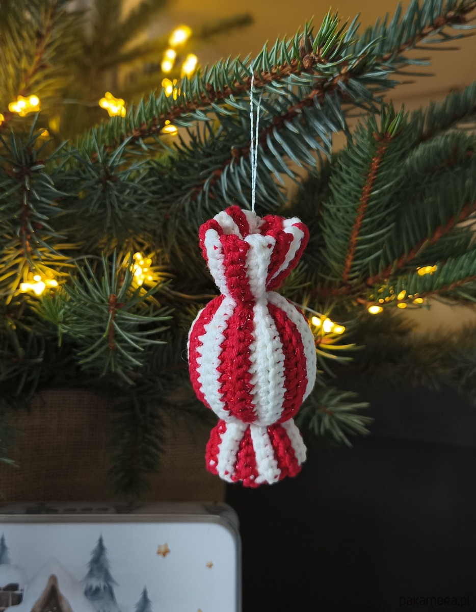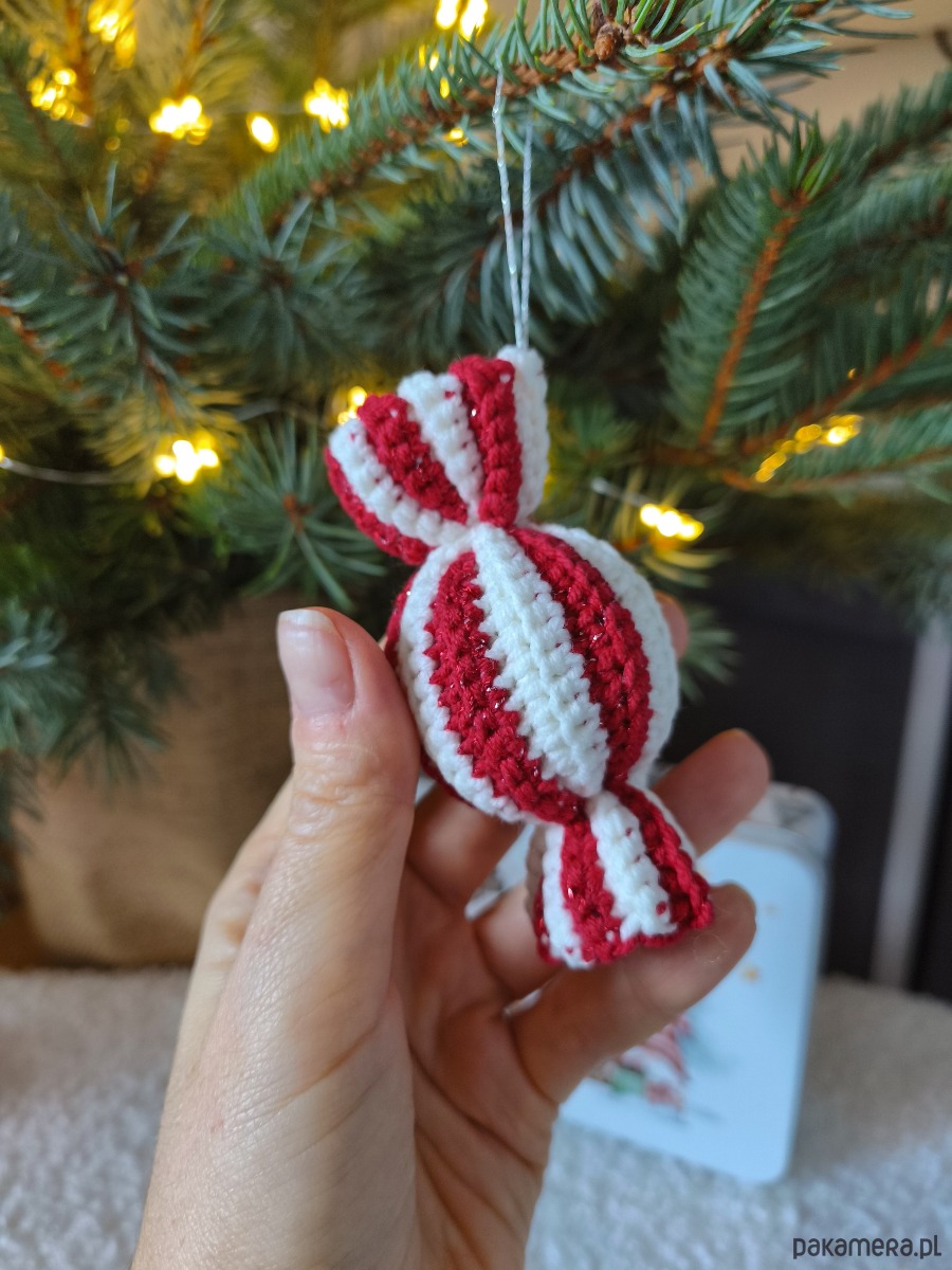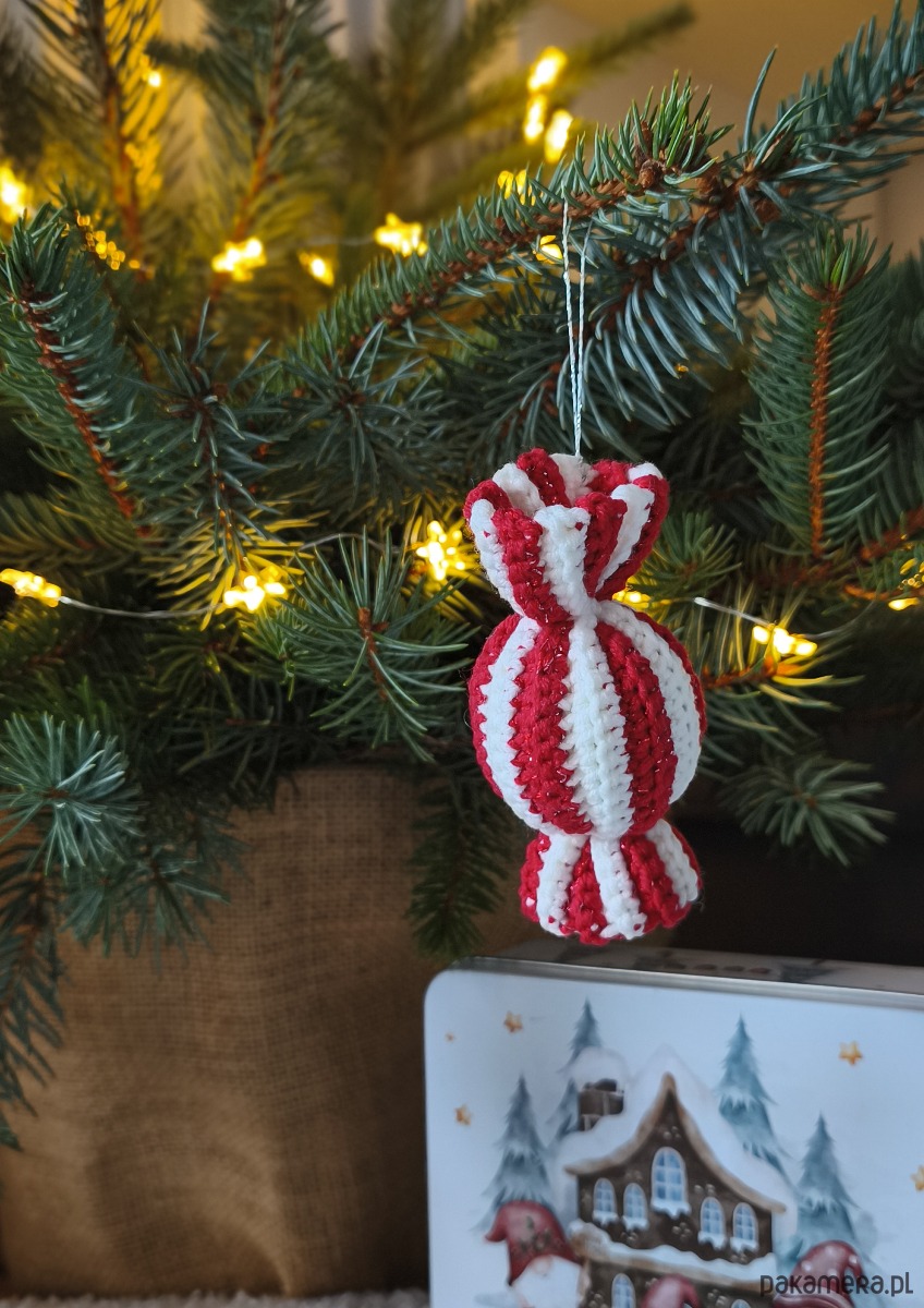 Cukierek (czerwony) ozdoba na choinkę, Zawieszka choinkowa, Ozdoba świąteczna