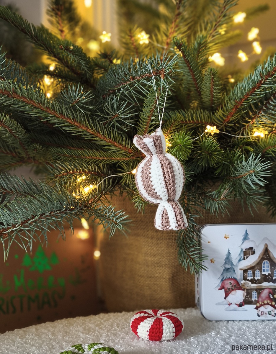 Cukierek (kawowy) ozdoba na choinkę, Zawieszka choinkowa, Ozdoba świąteczna