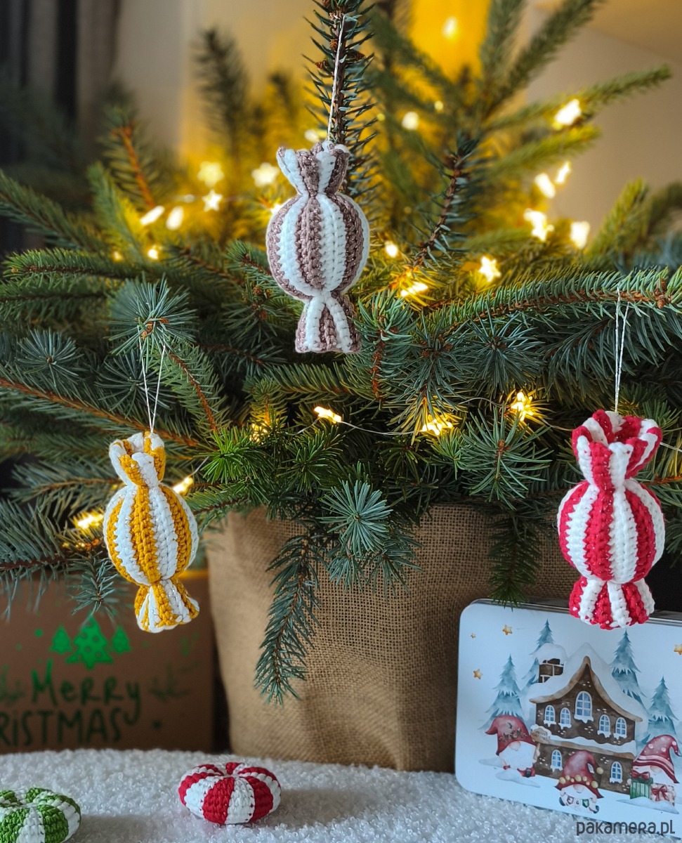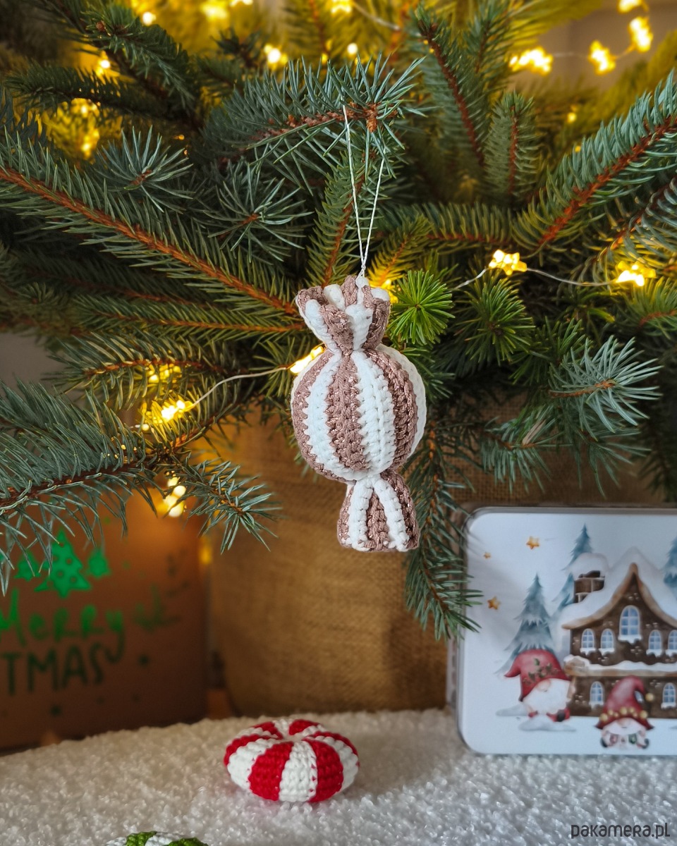 • Zawieszki cukierki w kawowej części mają błyszcząca nić, która dodaje im magicznego blasku