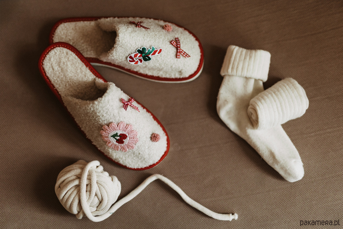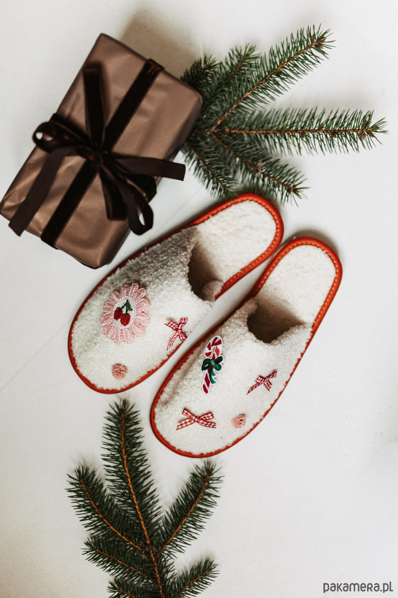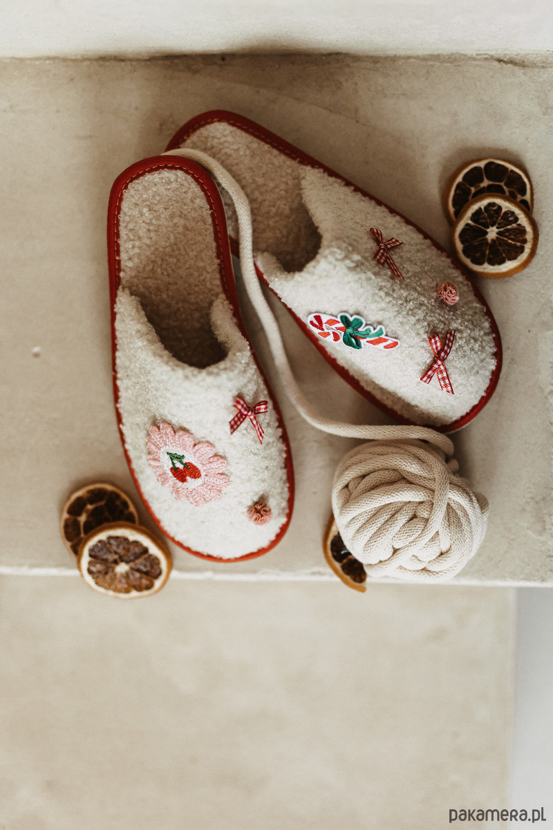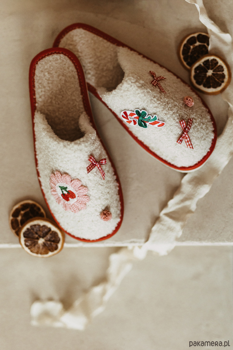 Kapcie słodkie i urocze, niczym z magicznej świątecznej krainy! Ozdobione pięknymi kokardkami i małą laseczką cukrową - idealne, jeśli kochasz słodkie detale i przytulny klimat. Miękkie, ciepłe i bardzo wygodne, wymarzone do noszenia przy ubieraniu choinki, pakowaniu prezentów lub pieczeniu świątecznych słodkości.