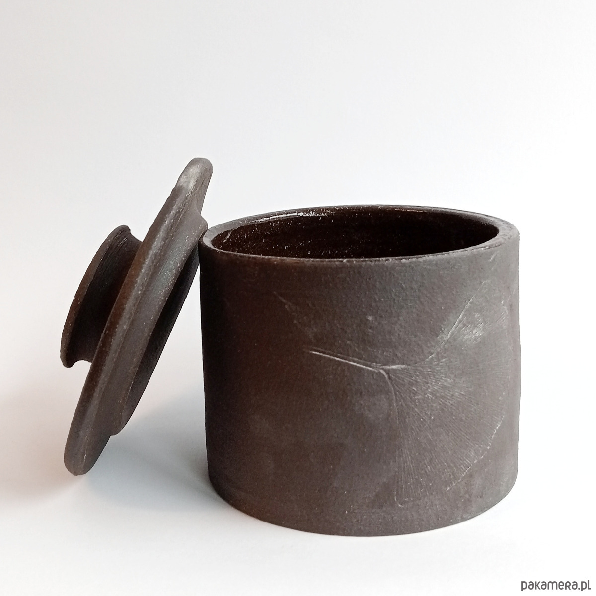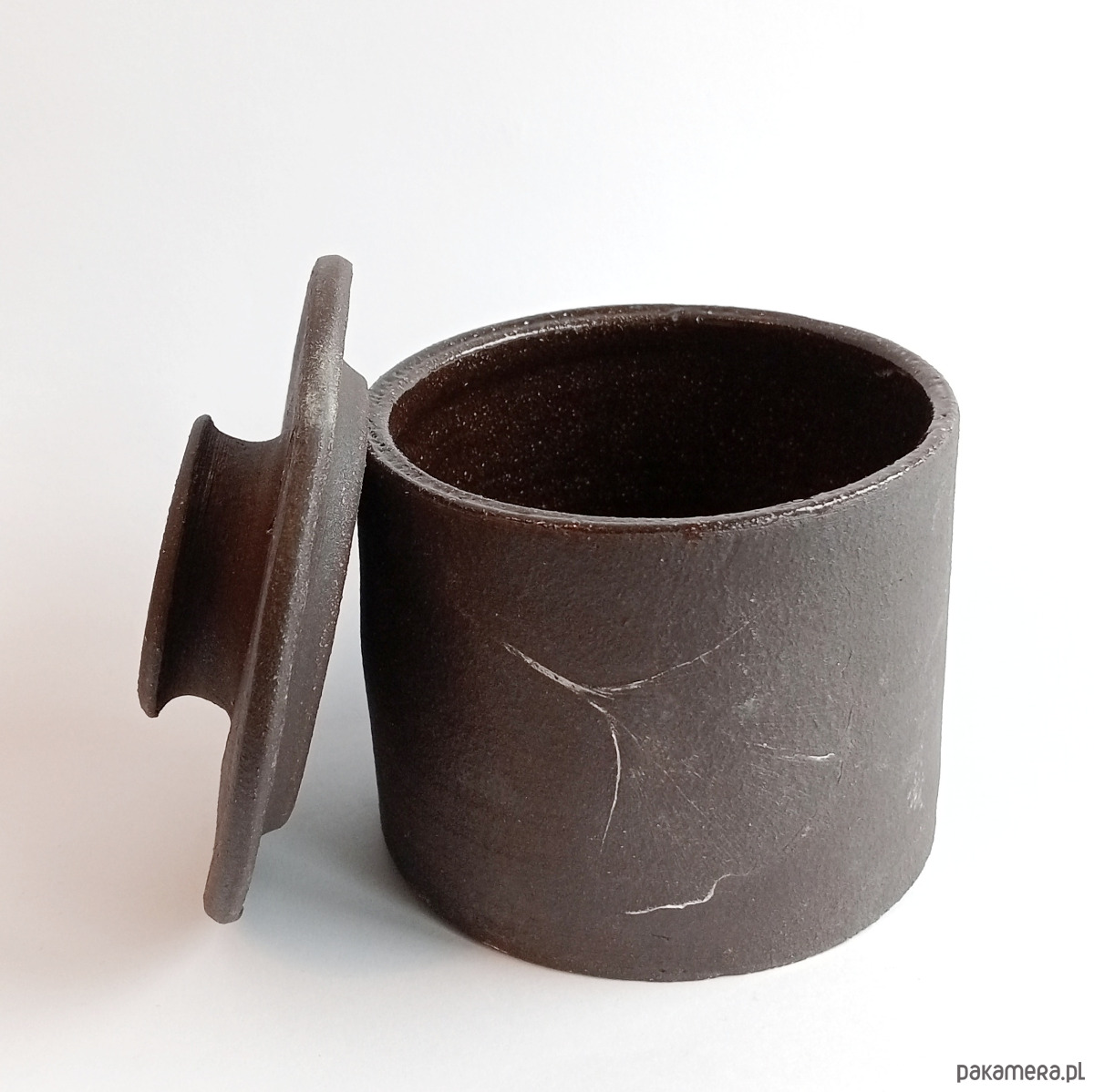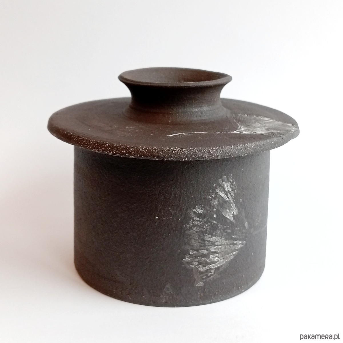 Cukiernica z ciemnej, pełnej szamotu, więc ciekawej w dotyku gliny.