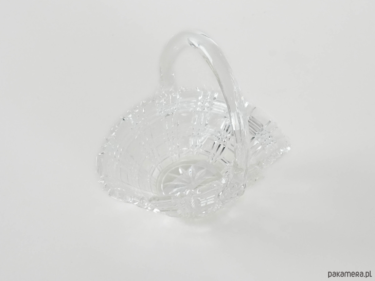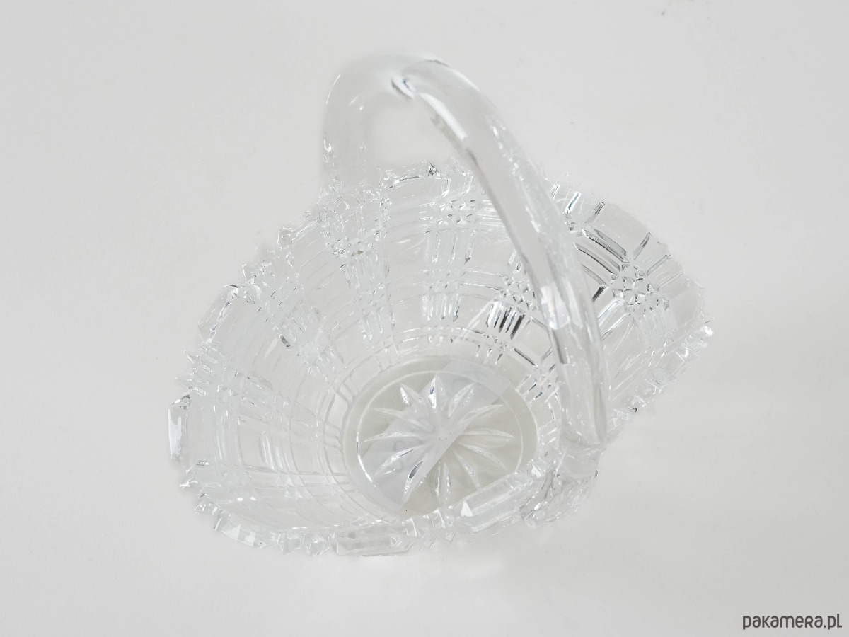 Kryształowa cukiernica w formie koszyczka wyprodukowana w latach 70-tych, produkcja duńska.