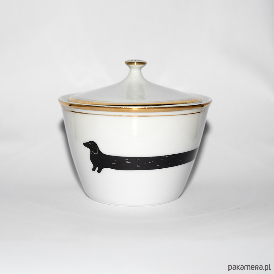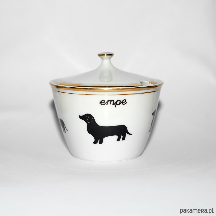 Porcelanowa cukierniczka z jamnikiem. Stworzona w duchu zero waste i upcykling – pochodzi z drugiej ręki. Kiedyś przez kogoś używana, później zapomniana, teraz ma szansę na nowy dom! Kupując przedmioty od Empe dbasz o naszą planetę ♥