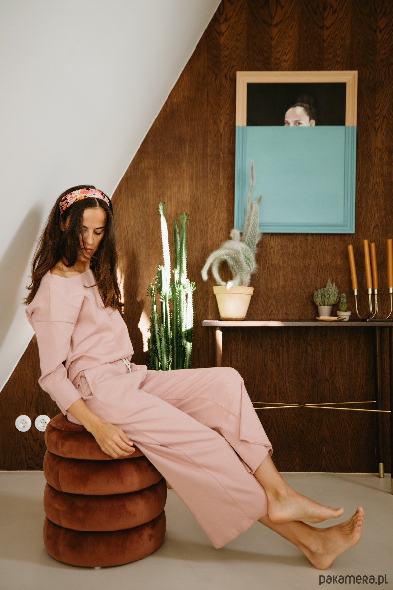 Z jednej strony ultrawygodna, prążkowana dzianina....z drugiej, nie do końca dresowy krój. To przecież kompozycja doskonała na zwykłą/niezwykłą codzienność. Ma być wygodnie i pięknie, bo zasługujemy na to co najlepsze. Efekt końcowy zależy od dodatków, a tutaj możemy poszaleć! Minimalistyczny design zestawu pozwala naprawdę na wiele! Trampki, chusta, oversizowy płaszcz.....na co tylko masz ochotę.