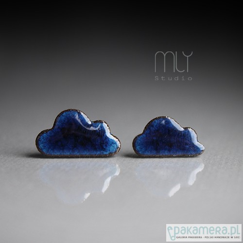Oryginalne ceramiczne kolczyki w formie sztyftów, ręcznie wykonane z gliny kamionkowej, jednostronnie szkliwione mieszanką granatowo błękitnych szkliw z efektem plamek, na antyalergicznych sztyftach w kolorze srebrnym. Długość ok 17 i 15mm. Polecam
