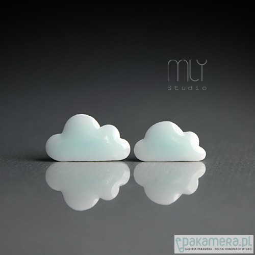 Oryginalne ceramiczne kolczyki w formie sztyftów, ręcznie wykonane z delikatnej śnieżnobiałej porcelany, jednostronnie szkliwione blado zielonym seladonowym szkliwem z efektem drobnych plamek, na antyalergicznych sztyftach w kolorze srebrnym. Długość ok 17 i 15mm. Polecam