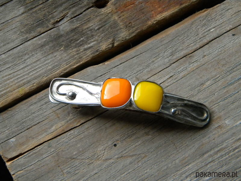 klamra do włosów ze szkła oprawionego w ocynowaną miedz.