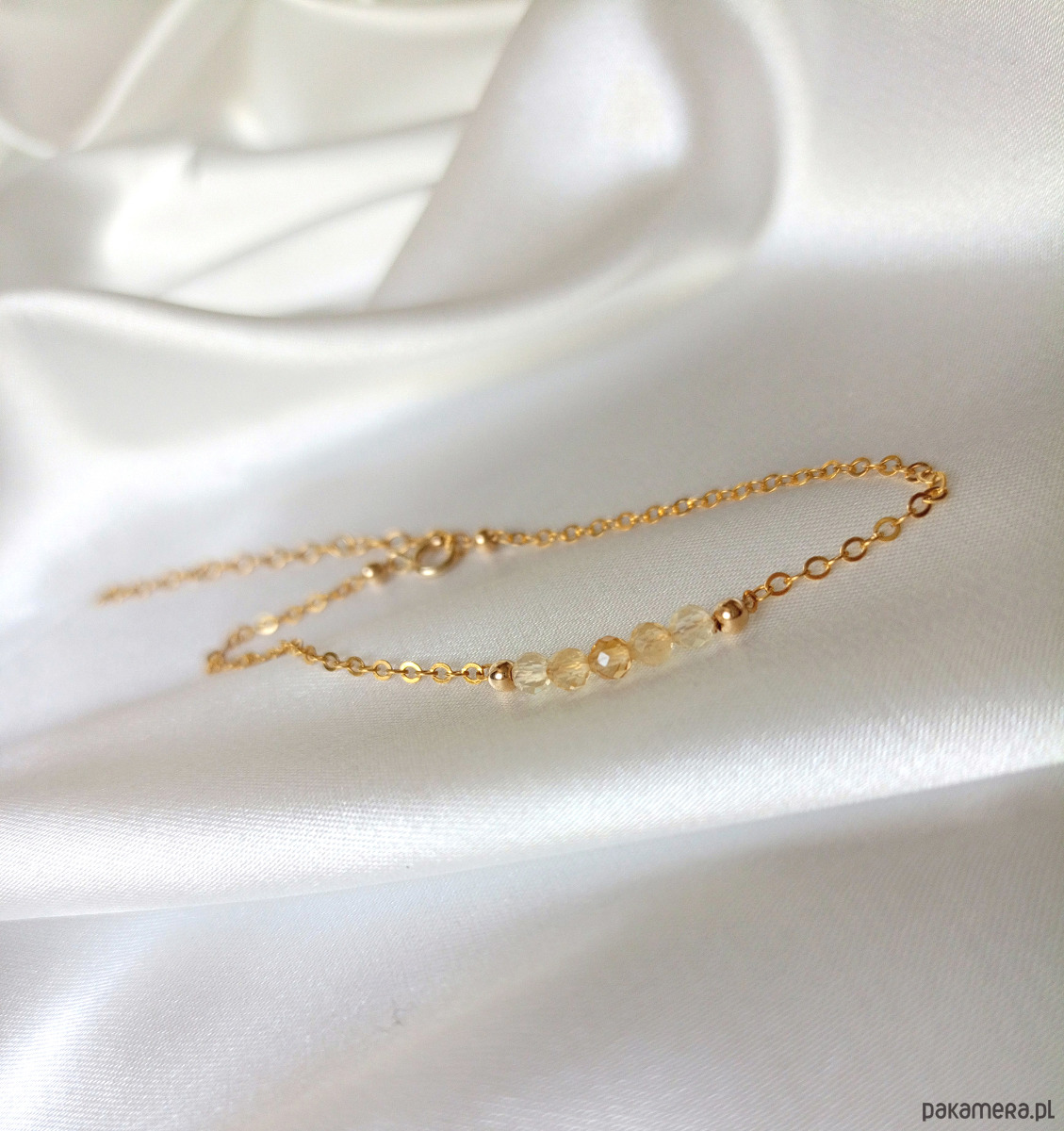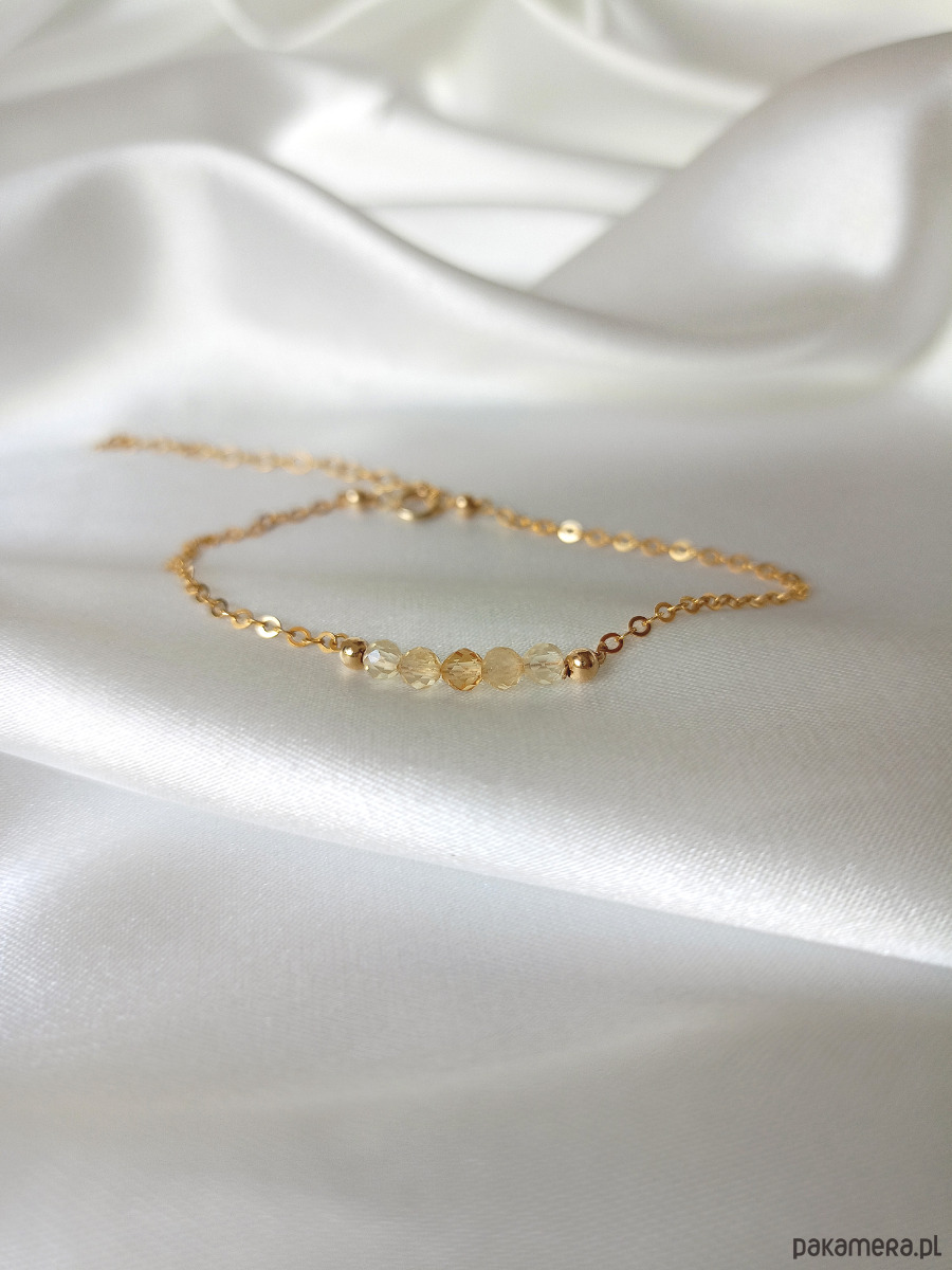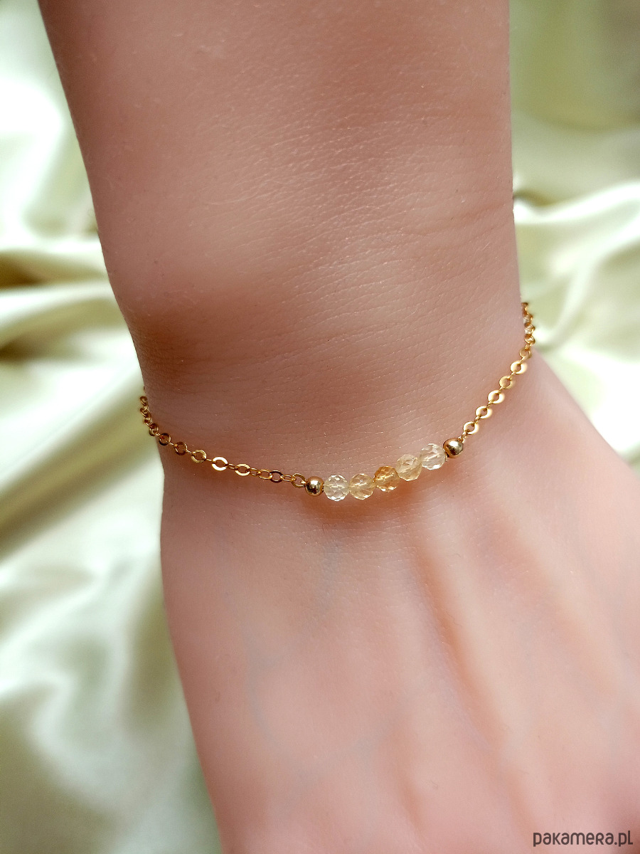 Delikatna, minimalistyczna bransoletka z naturalnym cytrynem. Fasetowane koraliki mają ok. 3 mm. Idealny talizman dobrobytu i obfitości.