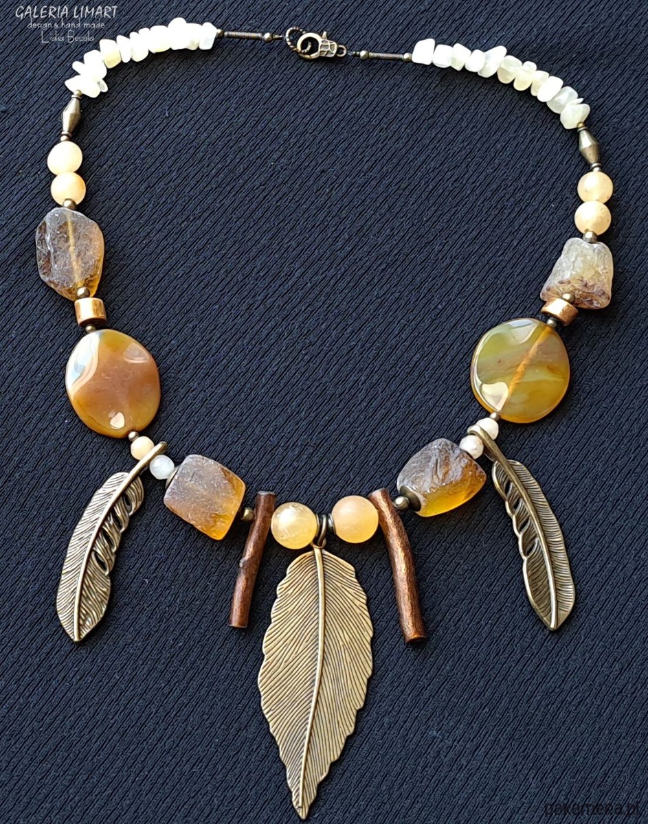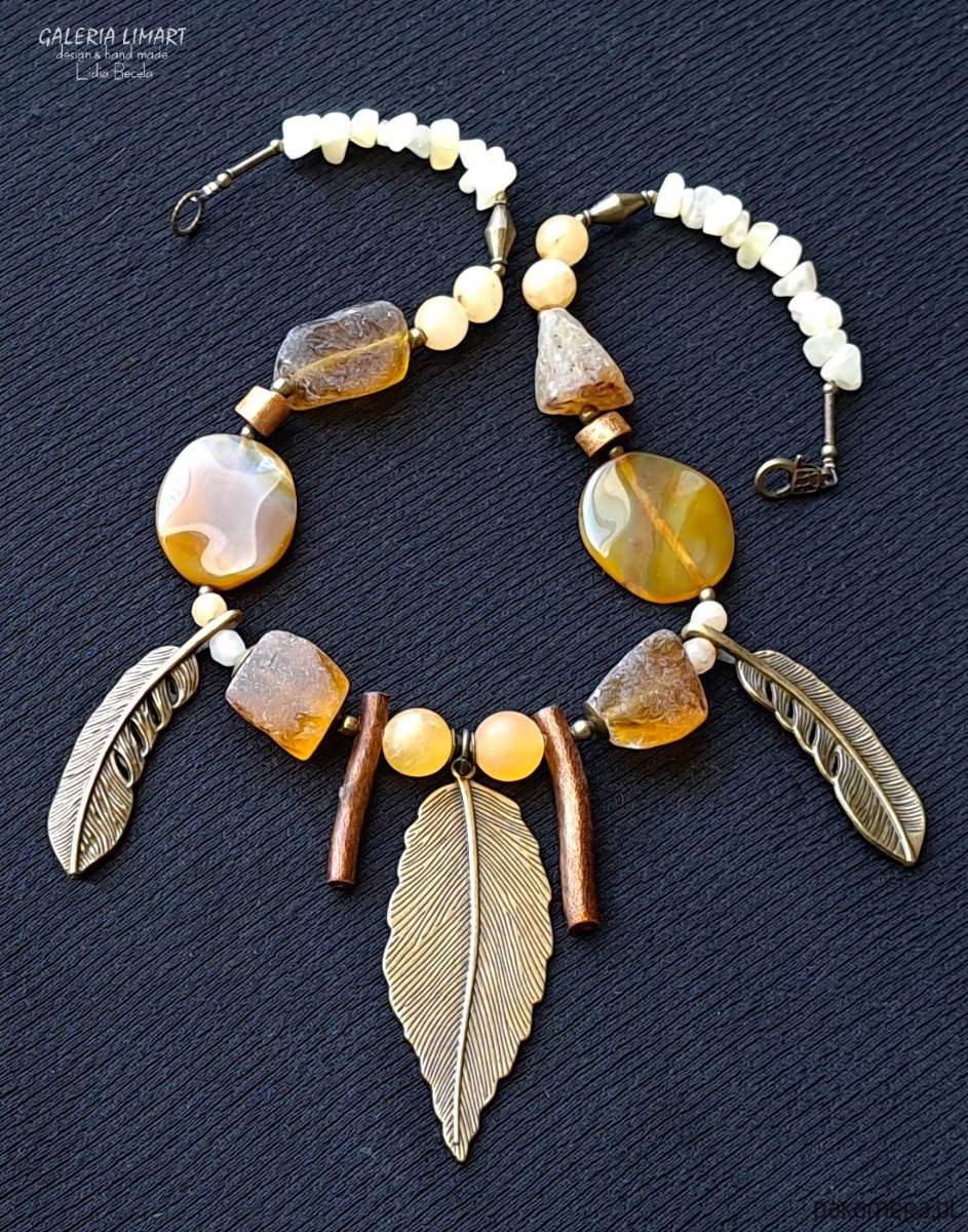Moja unikatowa, niezmiernie efektowna i elegancka kompozycja naszyjnika z surowych cytrynów, złotego korala i agatu + piękne ozdoby z mosiądzu, rewelacyjnie komponujące się z minerałami, tworząc perfekcyjną konfigurację kolorystyczną.