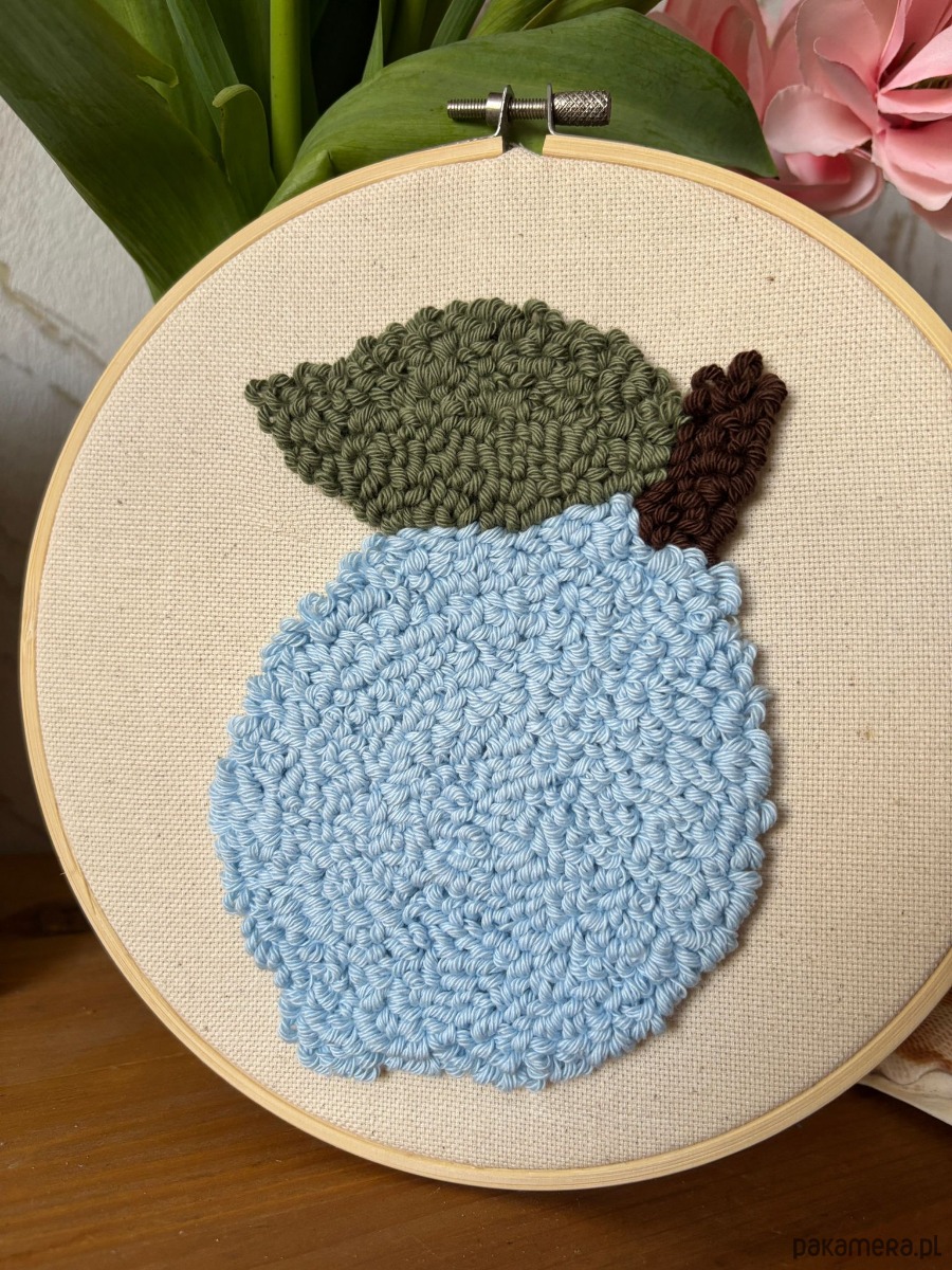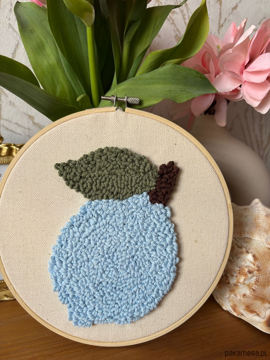 Ręcznie wykonana dekoracja ścienna w technice punch needle.
