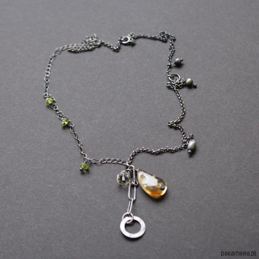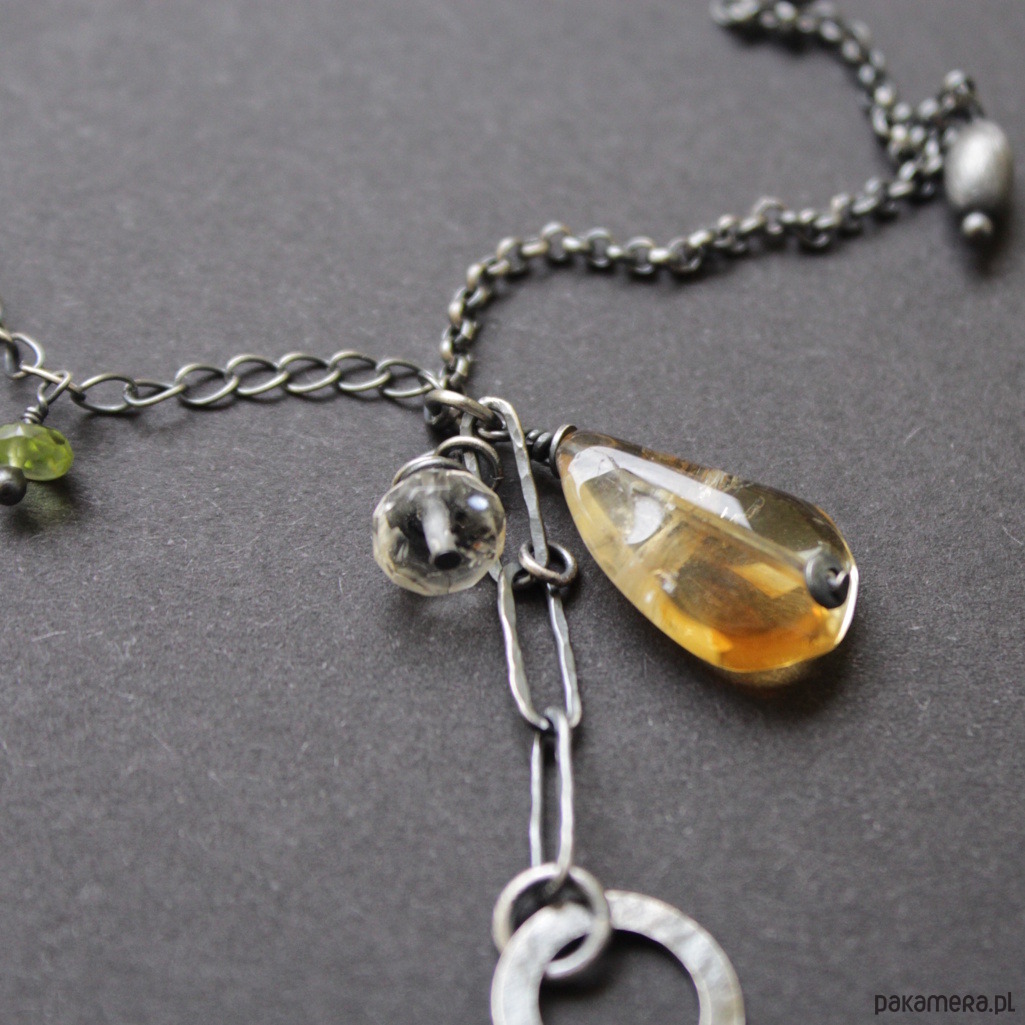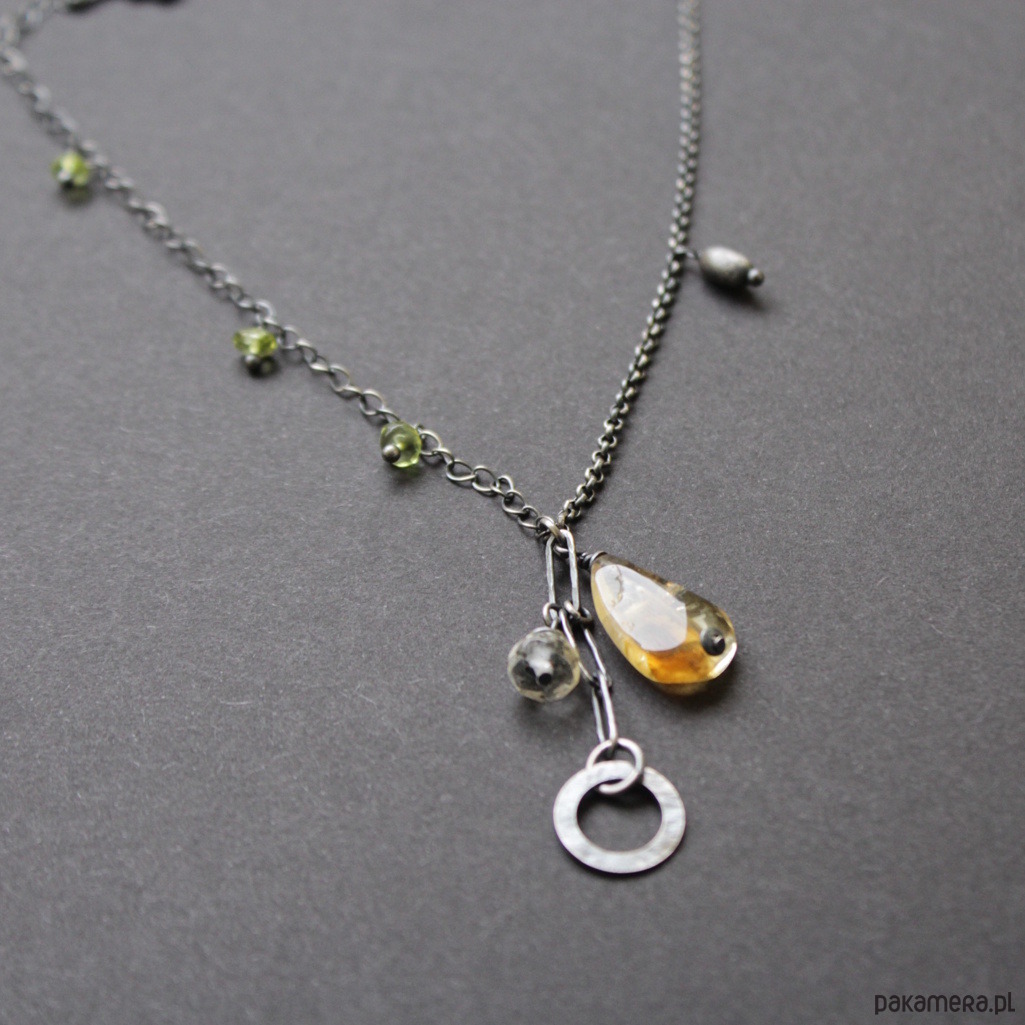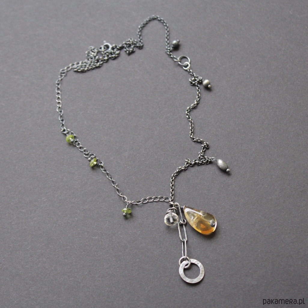 Naszyjnik zdobi piękny cytryn wielkości 1,8 cm oraz mniejszy fasetowany cytryn wielkości 0,6 cm.